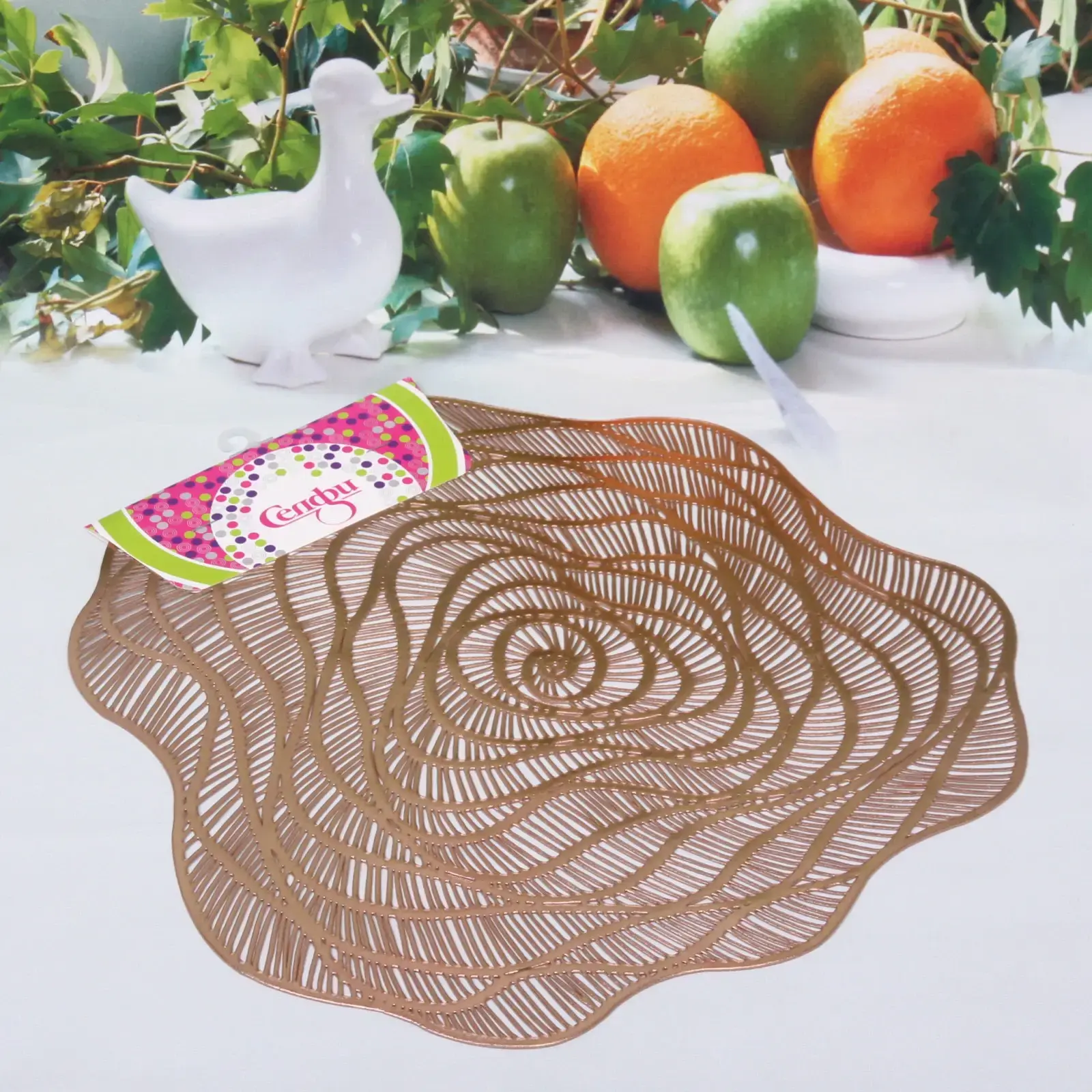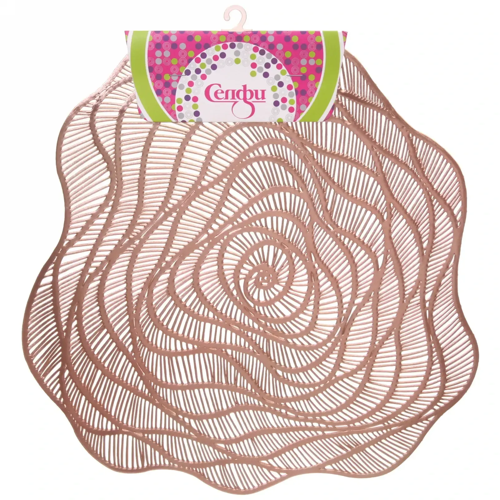 Салфетка плетеная «Роза» 38 см, ПВХ, антискользящая, декор стола, розовое золото