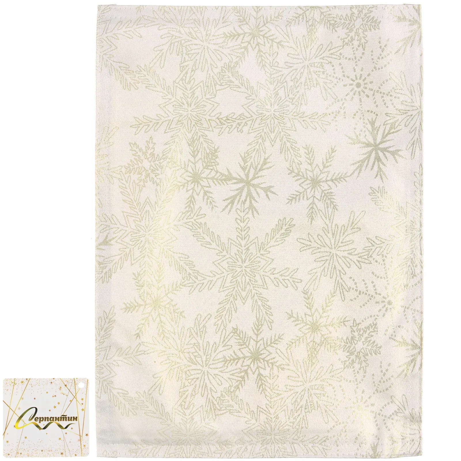 Размер: 33x44 см. Материал: плотный полиэстер с текстурированной поверхностью и аккуратной отделкой краев. Узор снежинок выполнен с вниманием к деталям, благодаря чему салфетка смотрится стильно и празднично.