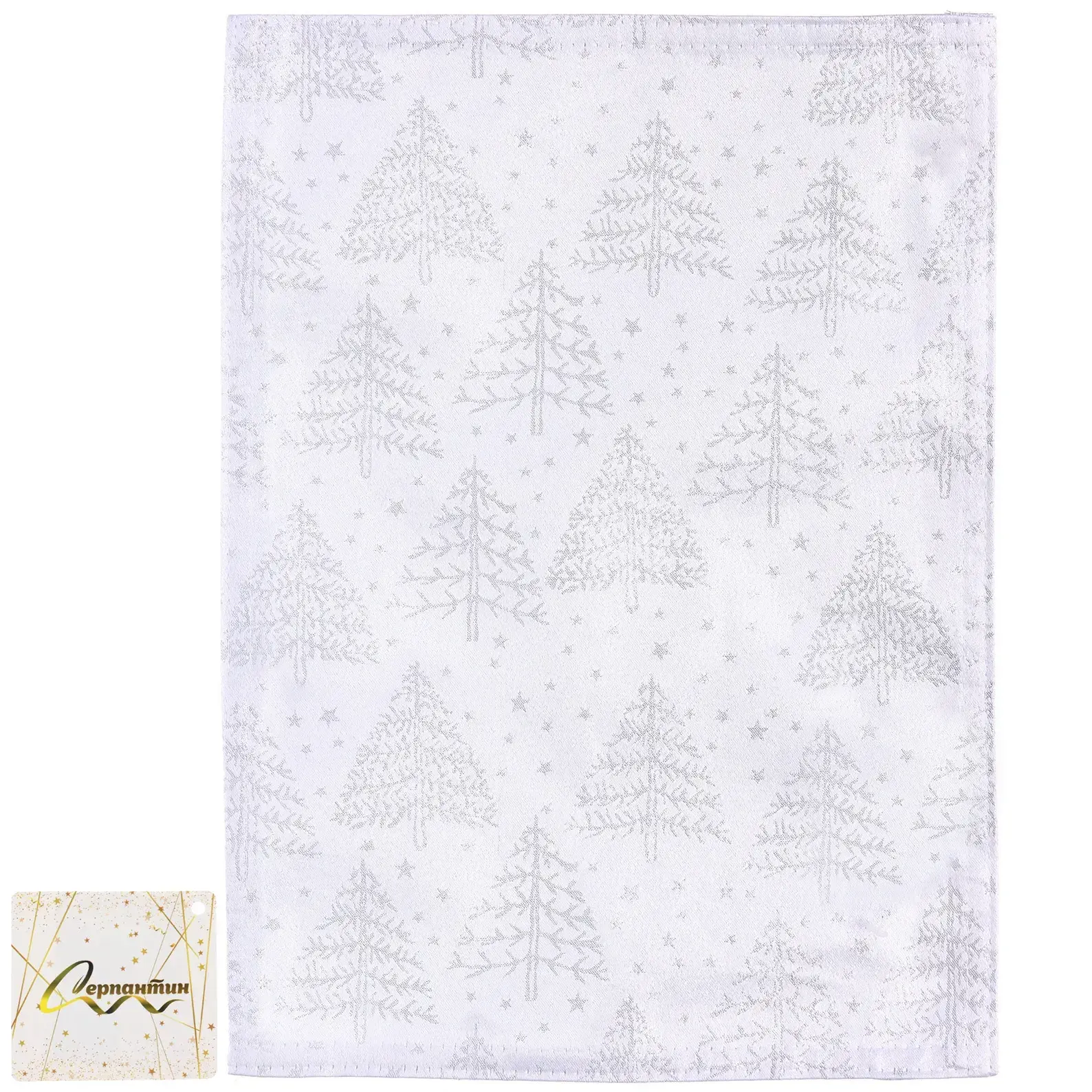 Салфетка имеет прямоугольную форму и оптимальные размеры, чтобы подчеркнуть сервировку стола, не загромождая пространство. Белый фон с серебряными ёлочками и звёздами добавит блеск даже простым фоновым сервировкам. Полиэстеровая ткань не требует сложного ухода — достаточно лёгкой стирки, и она снова будет выглядеть свежо.