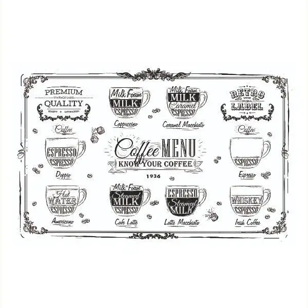 Сервировочная салфетка из ПВХ диаметром 26 см с авторским графическим дизайном "кофемания" эффектно дополнит любую сервировку. Черно-белая схема-меню кофе создаёт домашний уют и настроение настоящей кофейни прямо у вас дома, а практичный материал надежно защищает поверхность стола.