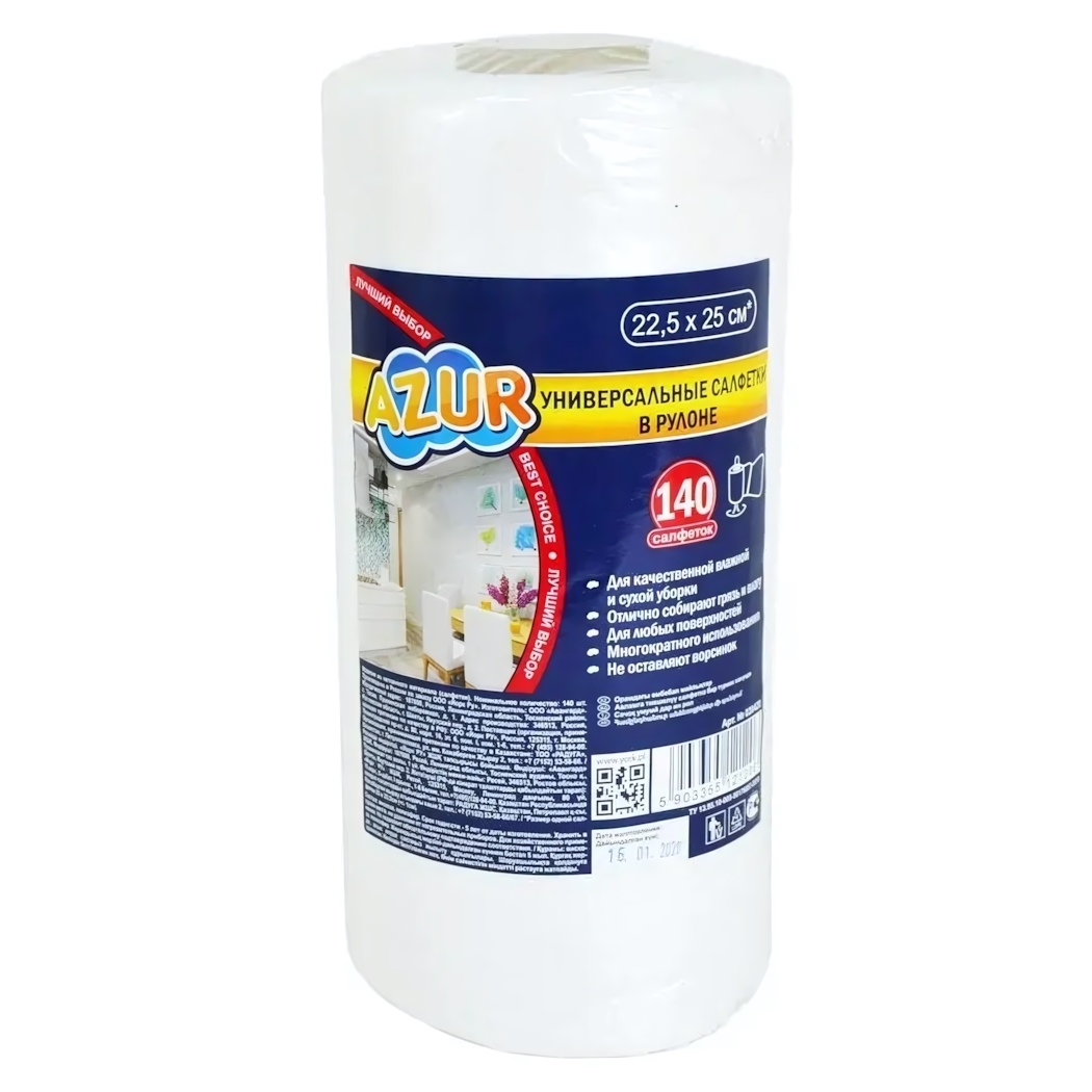 Салфетки универсальные AZUR, 140 штук в рулоне, целлюлозные 22,5x25 см, для всех поверхностей
