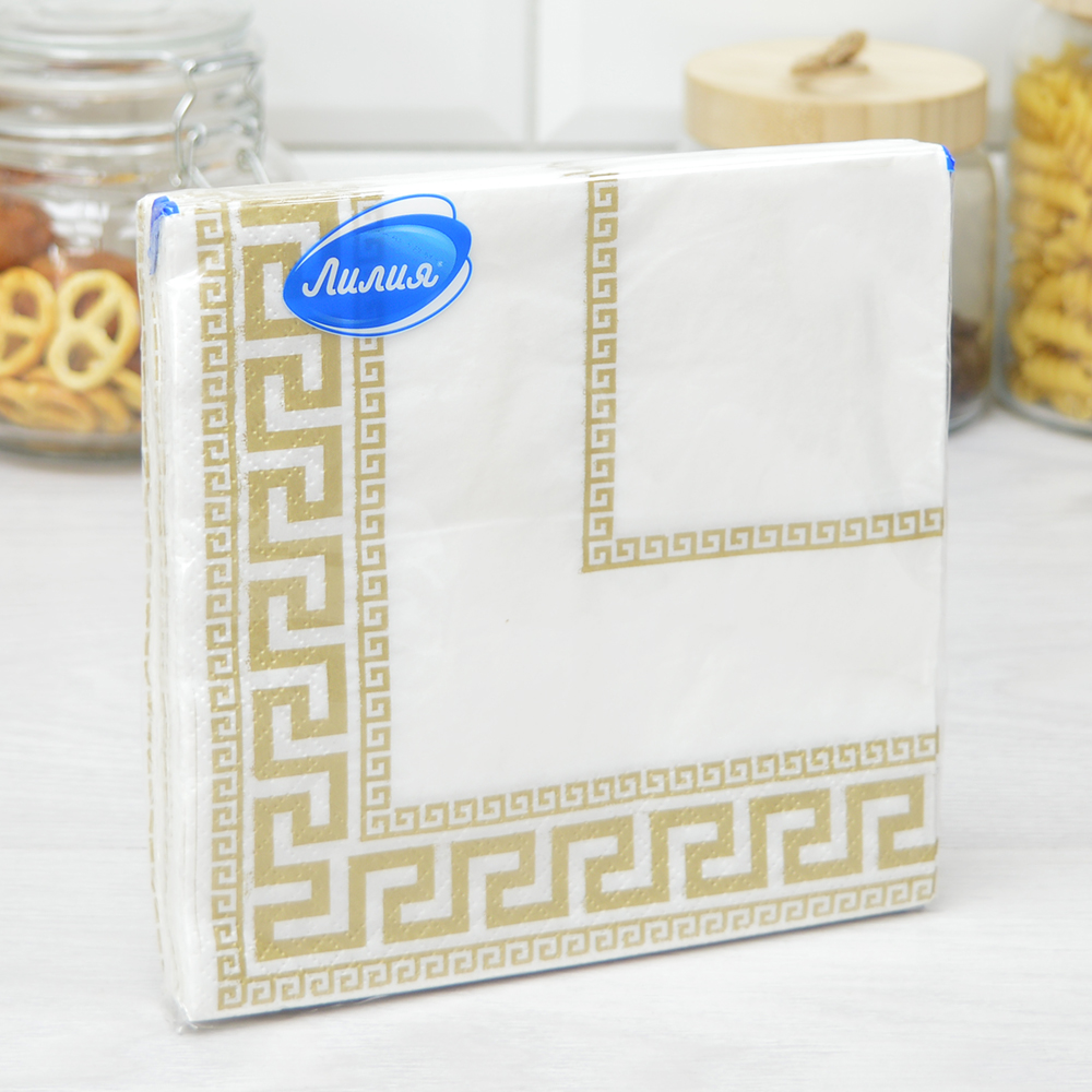 Салфетки 33*33 20 листов 2-слойные ''Меандр'' Салфетки отлично подойдут для сервировки стола, украсят праздничный стол. Размер - 33х33 см