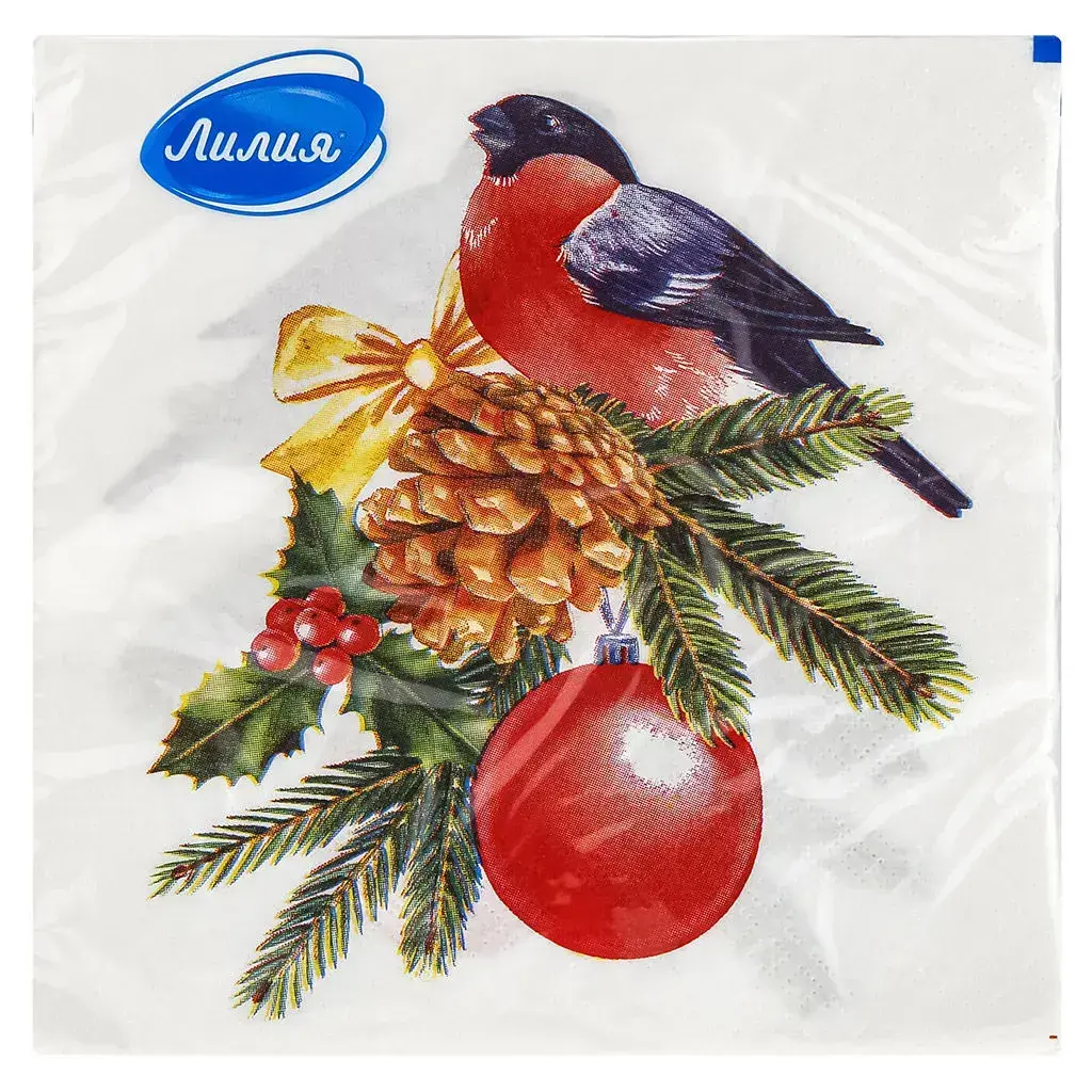 Праздничный стол становится уютнее, когда каждый элемент сервировки выполнен со вкусом. Салфетки бумажные 33*33 «снегирь» от бренда лилия создают праздничную атмосферу и дарят комфорт гостям: они прочные, впитывающие и приятно ощущаются в руке. Двухслойная структура обеспечивает надежность, а рисунок снегиря добавляет тепла и уюта к новогоднему столу.