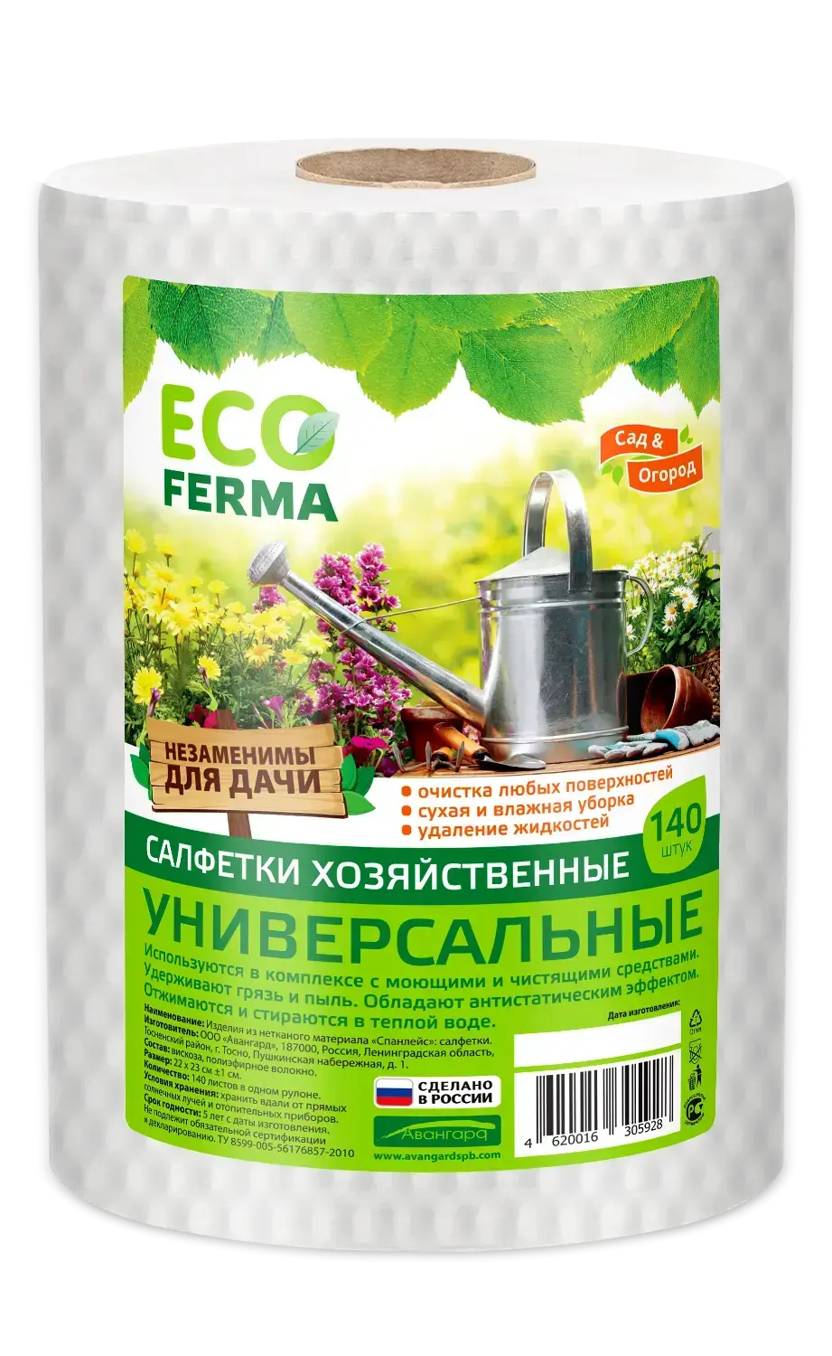 Прочные волокна спанслейса удерживают грязь внутри структуры материала, предотвращая распространение пыли во время уборки. Специальная обработка поверхности обеспечивает максимальную впитываемость жидкостей — до 300 мл на 1 м².