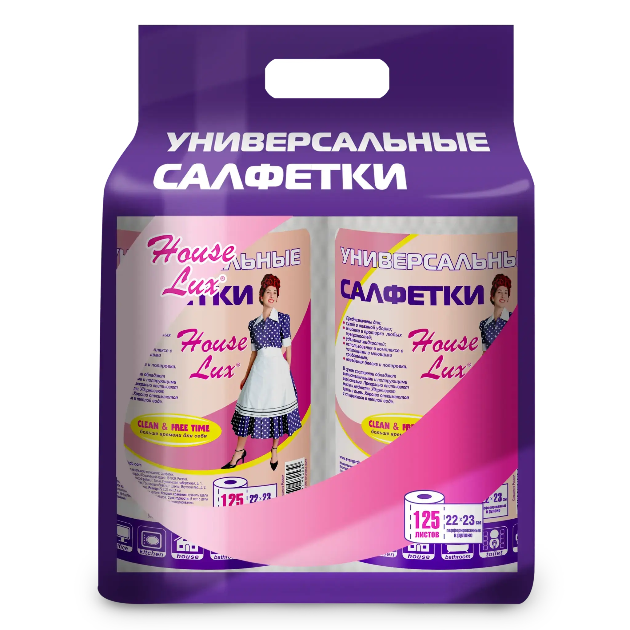 Салфетки «House Lux Duo» сочетают повышенную прочность и мягкую текстуру, делая уборку быстрой и комфортной. Два рулона по 125 листов обеспечат долговременный запас для повседневных задач.