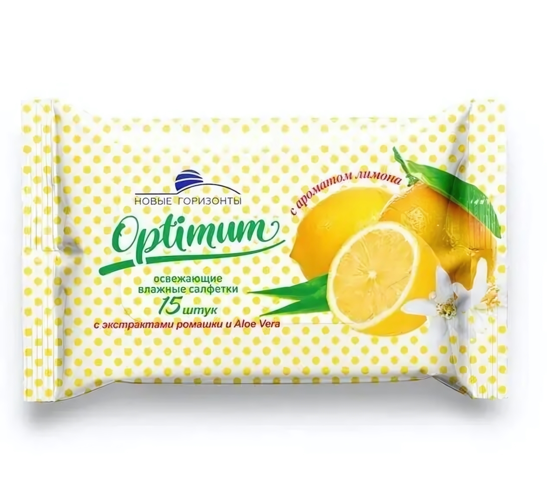 Эти влажные салфетки Новые Горизонты OPTIMUM с ароматом лимона обеспечивают свежесть и комфорт в любой ситуации. Они идеально подходят для использования дома, в офисе или на улице, чтобы быстро освежить кожу или привести в порядок руки и лицо. Упаковка содержит 15 шт, что делает их практичным решением для домашнего или дорожного использования, а яркий дизайн легко найти в сумке или доме.