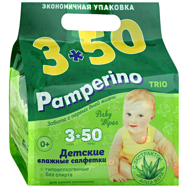 Каждая упаковка содержит 50 влажных салфеток, что делает их идеальными для длительного использования. Упаковка выполнена в ярком зеленом цвете с изображением малыша, что подчеркивает целевую аудиторию продукта. Заботьтесь о своем ребенке с влажными салфетками Pamperino — это надежный выбор для заботливых родителей!
