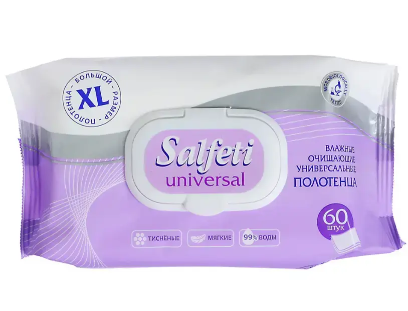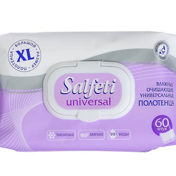 Каждая упаковка содержит 60 салфеток, что делает их экономичным выбором для всей семьи. Салфетки изготовлены из нетканого материала, что обеспечивает их прочность и долговечность. Не упустите возможность сделать свою жизнь более комфортной и чистой с влажными салфетками SALFETI Cool!