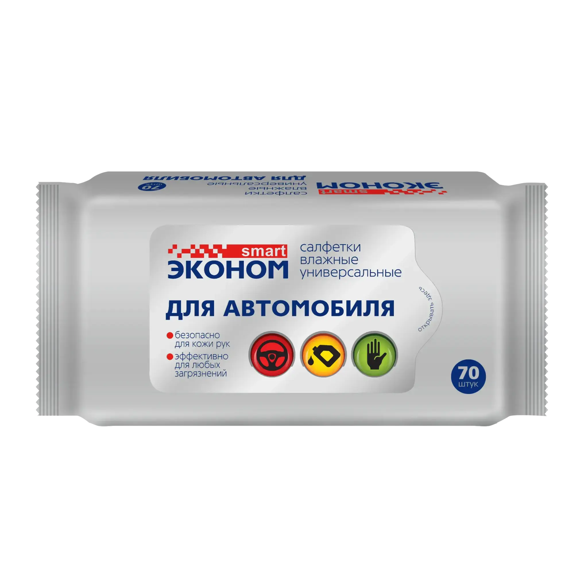 Салфетки изготовлены из нетканого материала, что обеспечивает их прочность и высокую впитывающую способность. Упаковка выполнена в прямоугольной форме и имеет белый цвет с цветными акцентами, что делает ее стильной и привлекательной. Не упустите возможность сделать ваш автомобиль чистым и ухоженным с помощью влажных салфеток SMART Эконом!