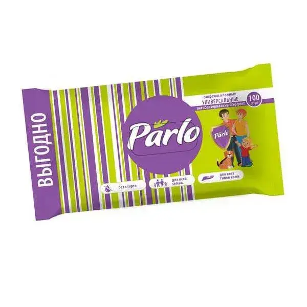 Влажные салфетки антибактериальные 100 шт, универсальные для всей семьи, без отдушек Parlo