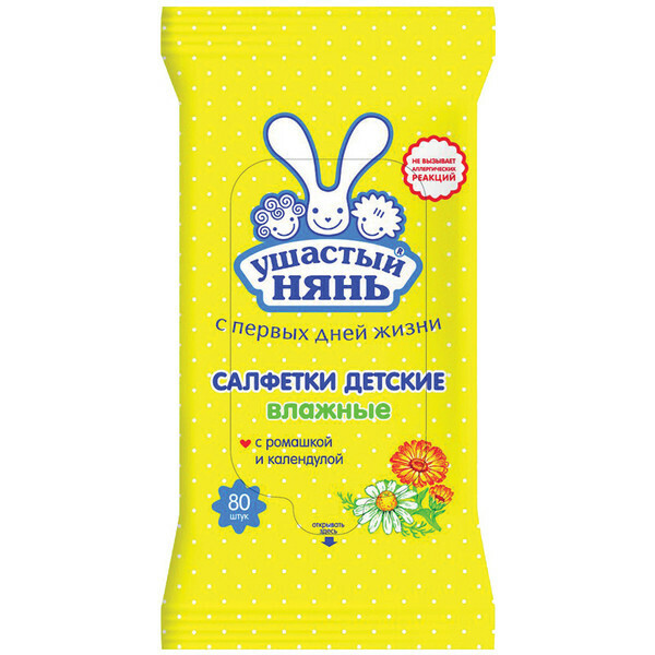 Обеспечьте комфорт и заботу о нежной коже вашего малыша с влажными салфетками УШАСТЫЙ НЯНЬ. Эти салфетки идеально подходят для новорожденных и могут использоваться с первых дней жизни. Они содержат экстракты ромашки и календулы, которые известны своими успокаивающими и противовоспалительными свойствами, что делает их отличным выбором для ухода за чувствительной кожей.