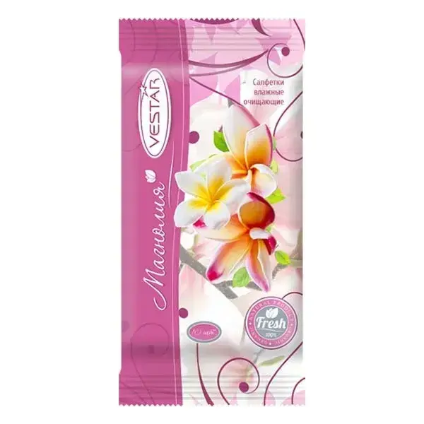 Салфетки влажные очищающие 'Магнолия', 10 шт, мягкие, аромат цветов, цвет в ассортименте