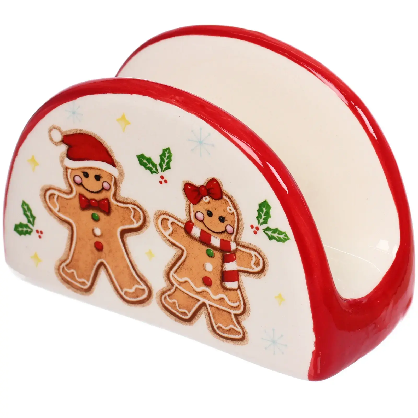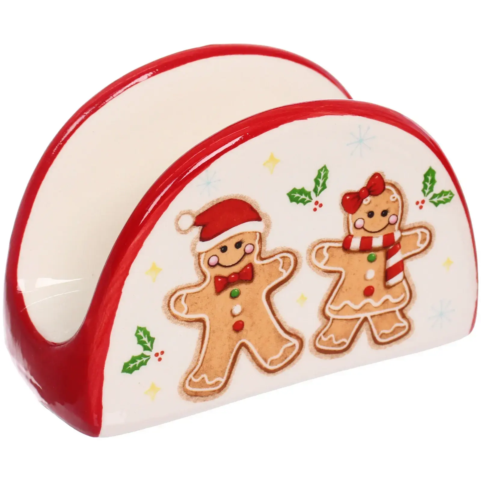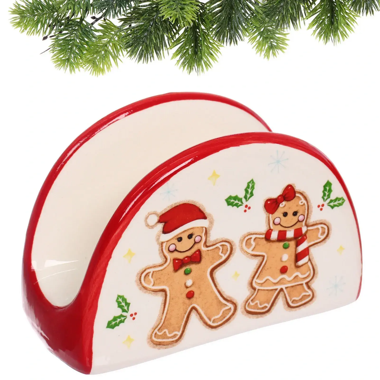 Выбирая эту салфетницу, вы получаете не только практичный аксессуар, но и стильный элемент декора. Керамика, из которой она изготовлена, обеспечивает долговечность и лёгкость в уходе. Гладкая глазурованная поверхность легко очищается, а яркий дизайн с рождественскими человечками добавляет веселья в любое застолье.