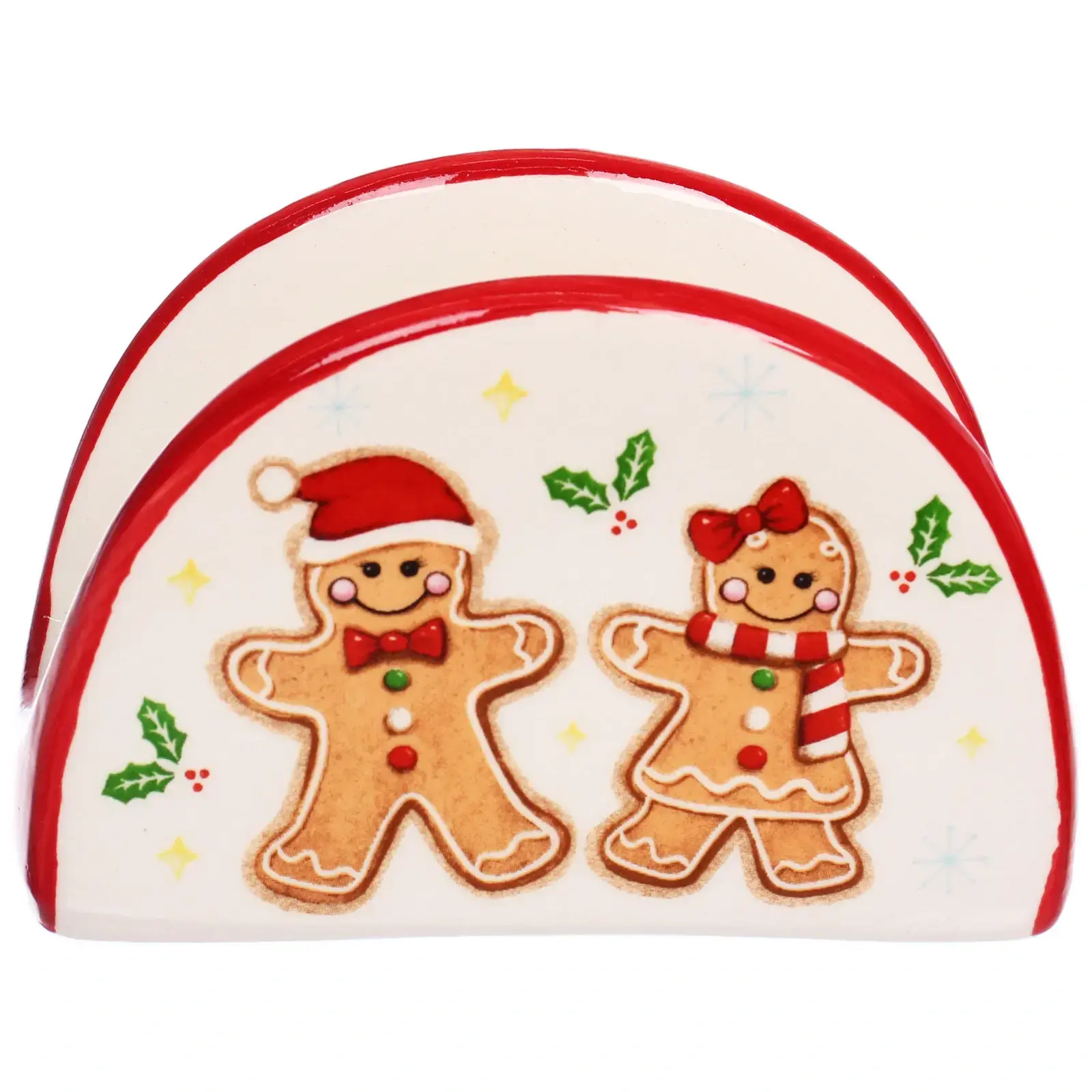 Создайте уютную атмосферу на вашем праздничном столе с помощью этой уникальной салфетницы. Она не только функциональна, но и станет ярким акцентом вашего новогоднего декора. Салфетница выполнена из качественной керамики и украшена милыми пряничными человечками, что придаёт ей особый шарм и праздничное настроение.