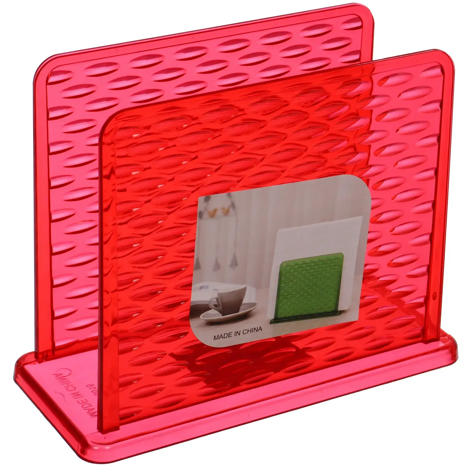 Эта салфетница станет незаменимым аксессуаром для вашего стола, добавляя нотку стиля и удобства в каждую трапезу. Изготовленная из качественного пластика, она не только легкая, но и прочная, что гарантирует долговечность использования. Красный цвет придаст яркость вашему интерьеру, а компактные размеры 14х6,5х11,5 см позволят разместить её даже на небольшом столе.