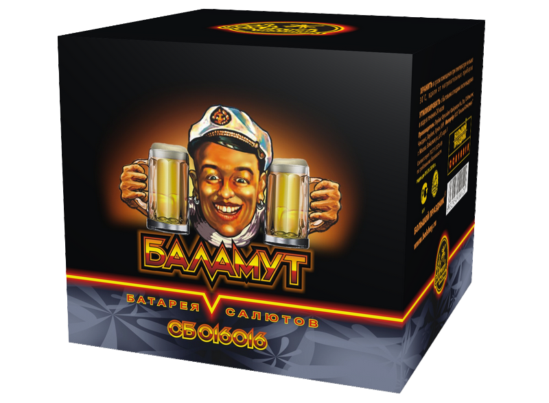 Салют упакован в квадратную коробку с яркой графикой, что делает его привлекательным дополнением к любому празднику. Упаковка оформлена в черных тонах с оранжевыми и желтыми элементами, что создает контраст и привлекает внимание. Не упустите возможность сделать ваш праздник незабываемым с салютом "Баламут" 18/1!