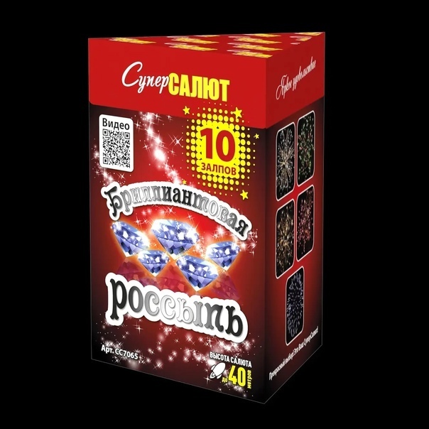 Салют упакован в яркую коробку с красным дизайном и блестящими элементами, что делает его отличным подарком. На упаковке указаны все необходимые характеристики, включая высоту и количество залпов. Не упустите возможность сделать ваш праздник незабываемым с салютом «Бриллиантовая россыпь»!