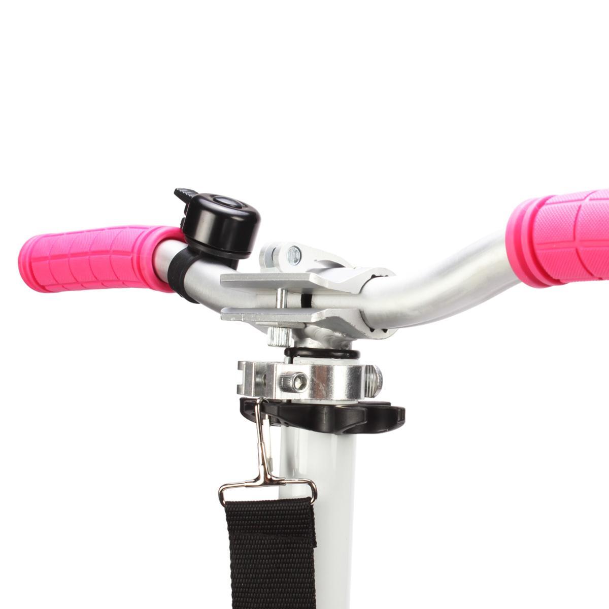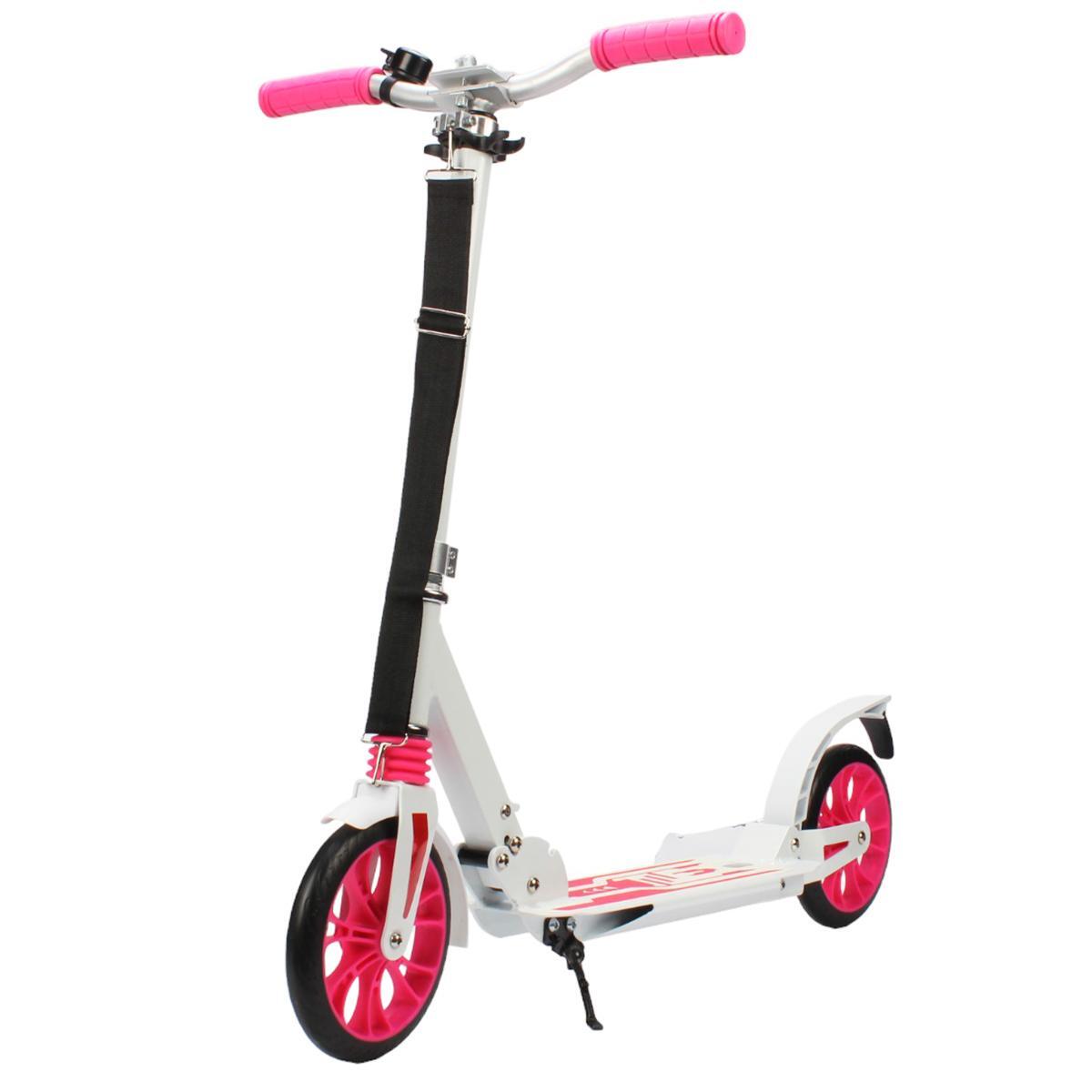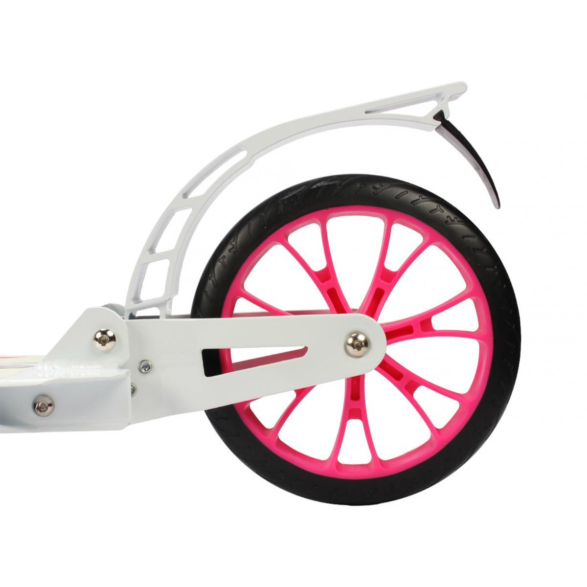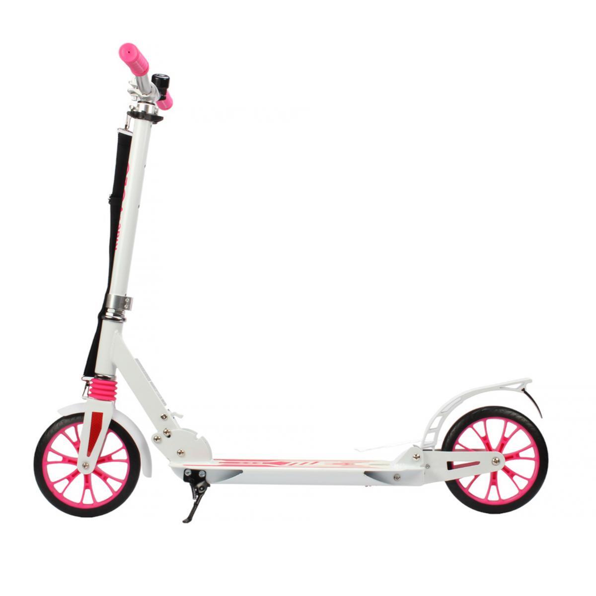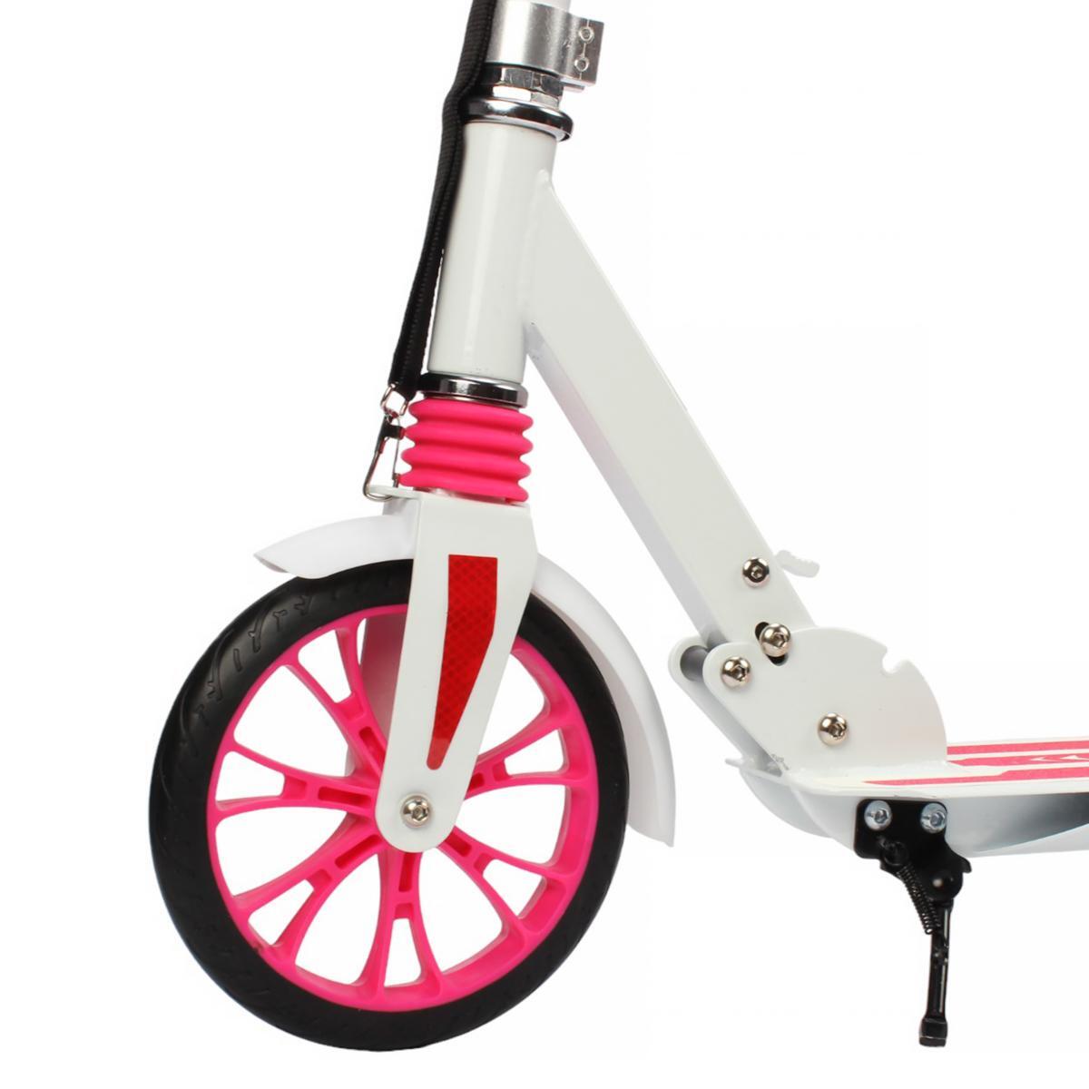 Самокат изготовлен из высококачественных алюминиевых материалов, что гарантирует его легкость и прочность. Колеса диаметром 200 мм выполнены из PU, обеспечивая отличную амортизацию и плавный ход по неровным поверхностям. Яркие цвета в белом и розовом исполнении делают самокат привлекательным для детей, а также обеспечивают хорошую видимость на дороге, что крайне важно для безопасности.