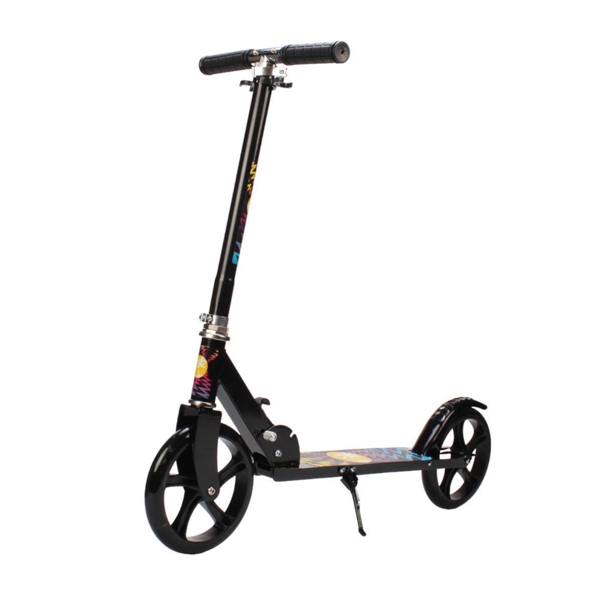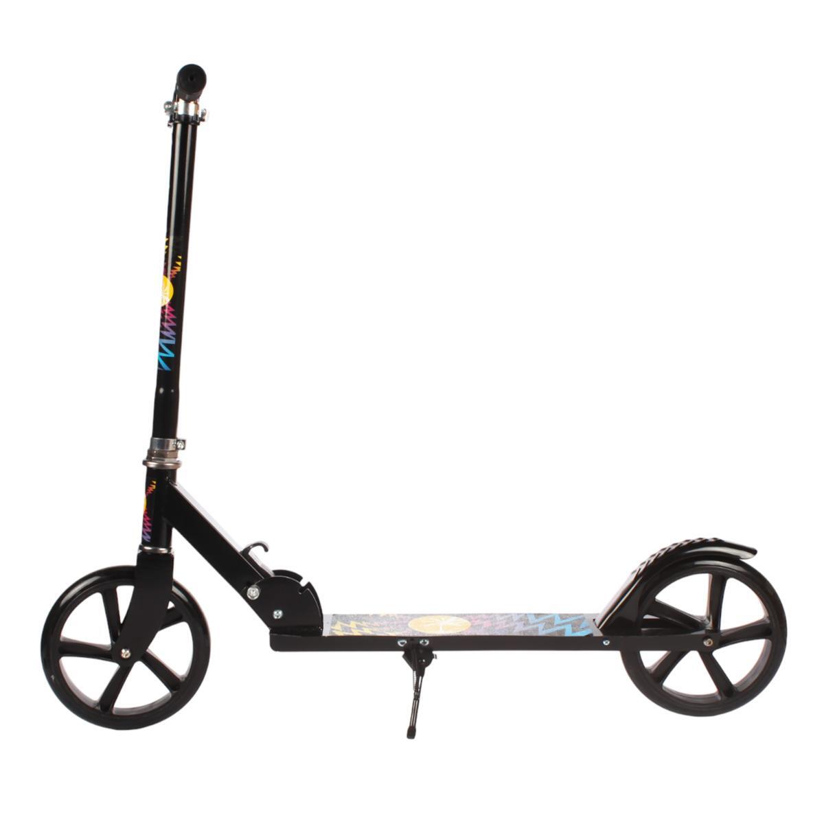 Самокат двухколесный складной, колеса PU 200мм, регулируемая высота, черный с графикой