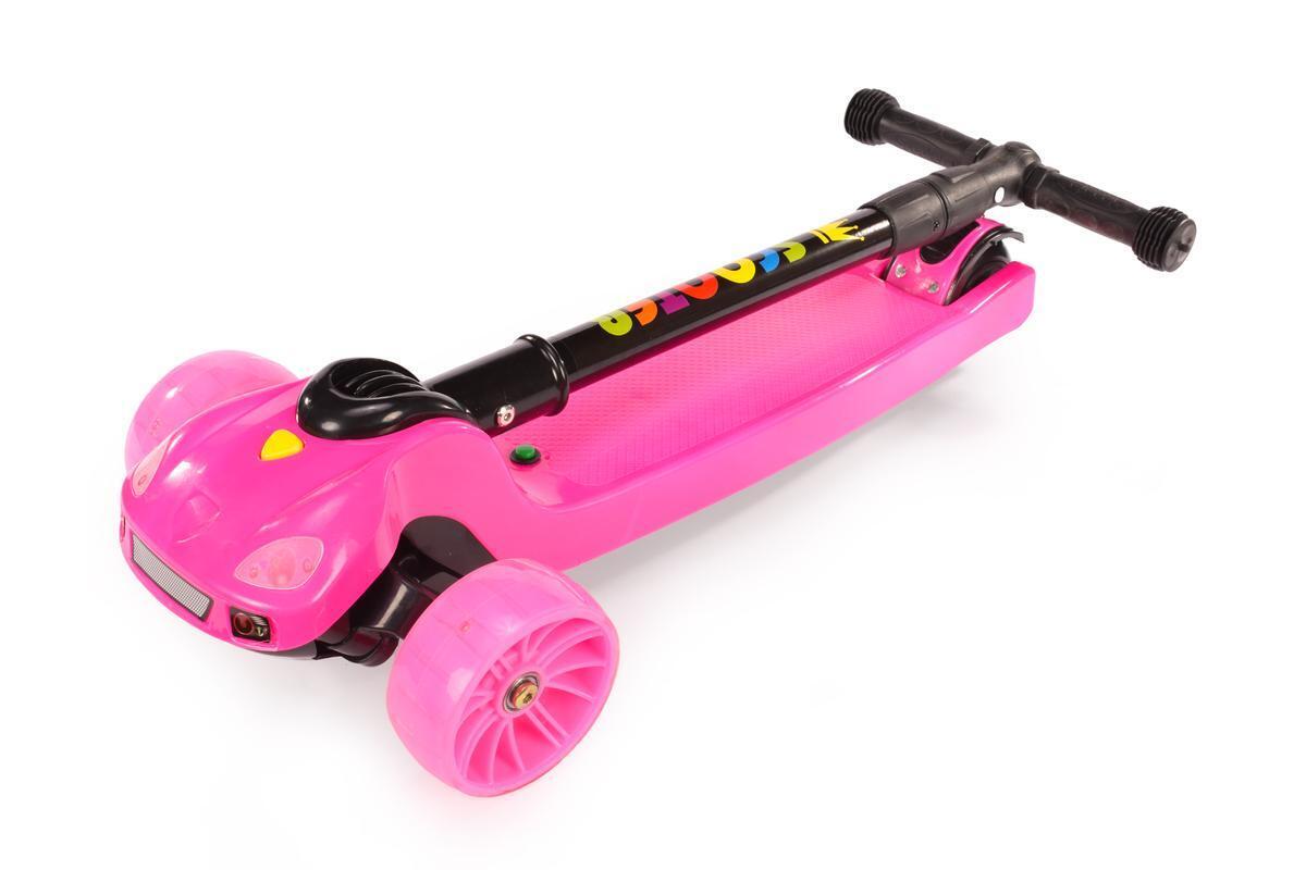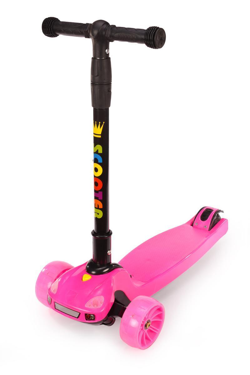 Самокат детский трехколесный "02С", розовый, со светом и звуком, PU-колеса, до 80 кг