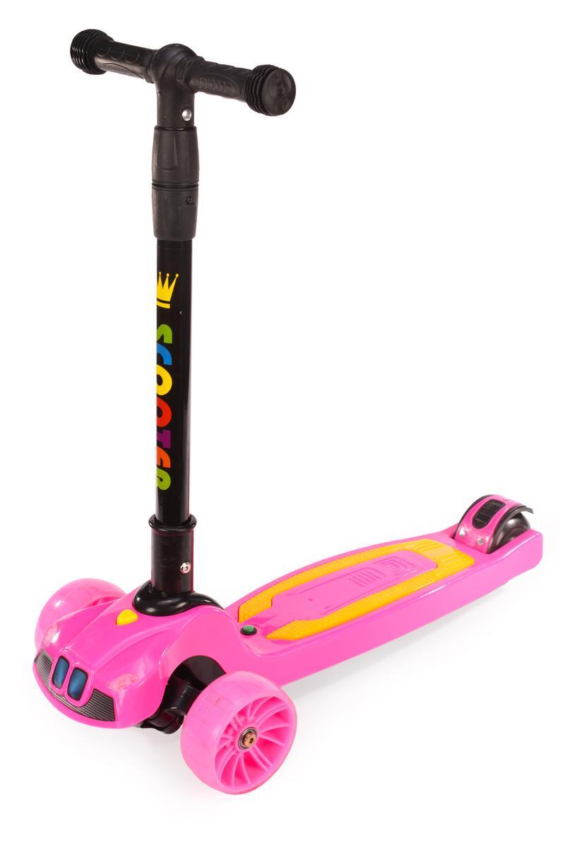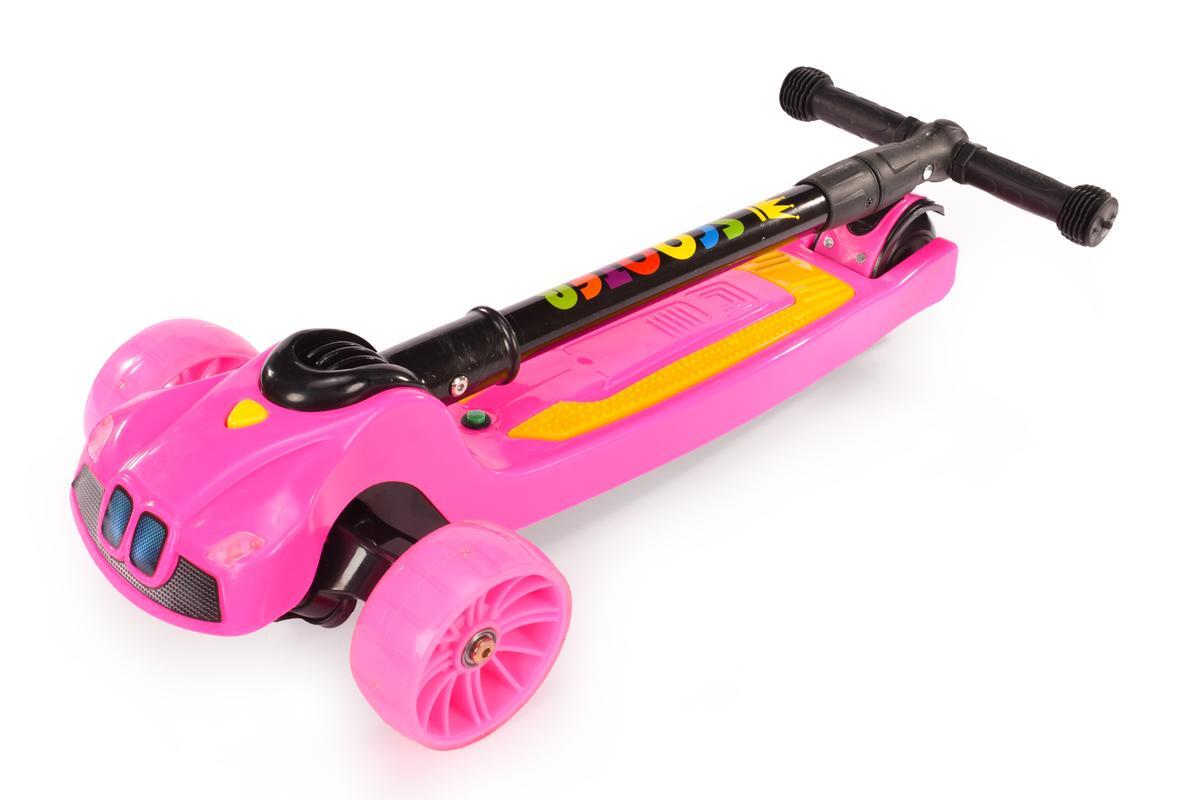 Самокат детский 3-х колесный «03Б» с подсветкой и музыкой, регулируемый руль, розовый