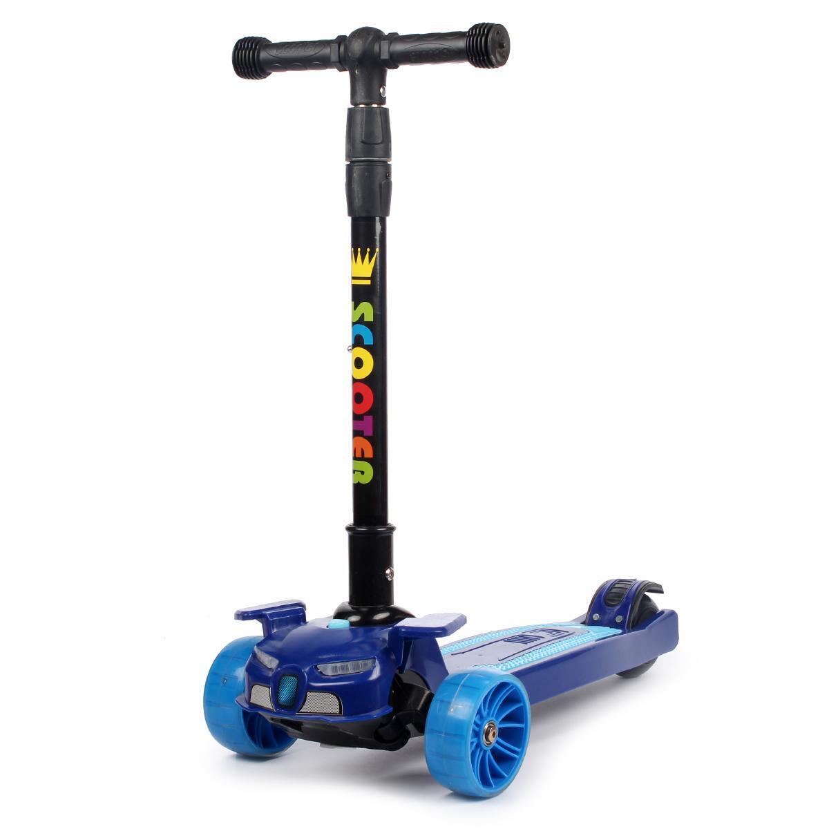 Самокат трёхколёсный с подсветкой и звуком, синий, регулируемая ручка 66-80 см, колёса PU, нагрузка до 80 кг