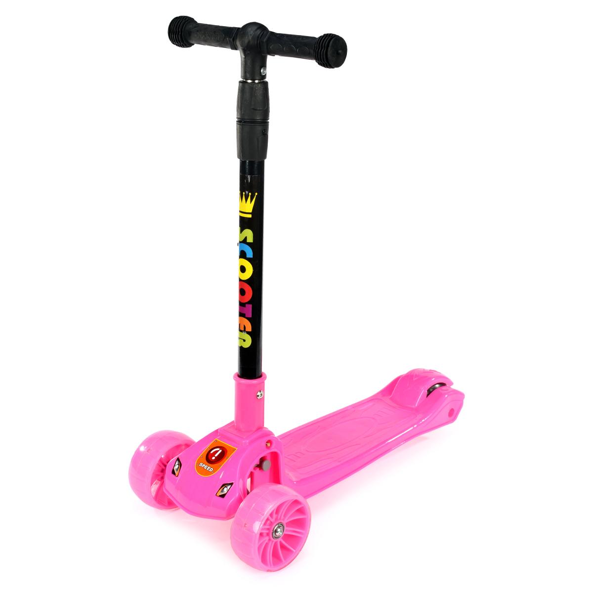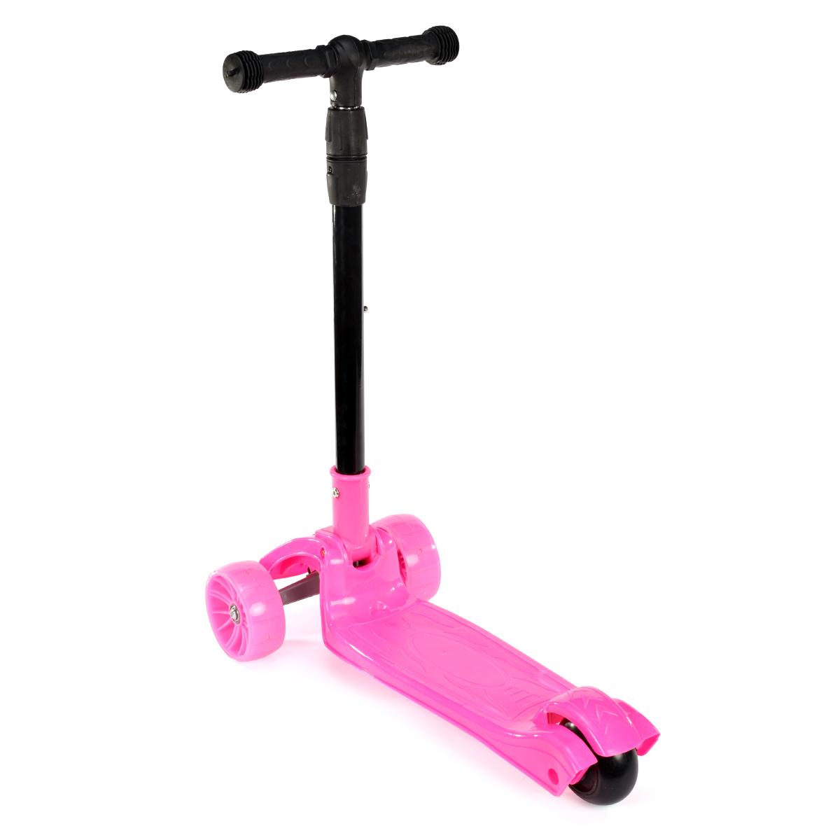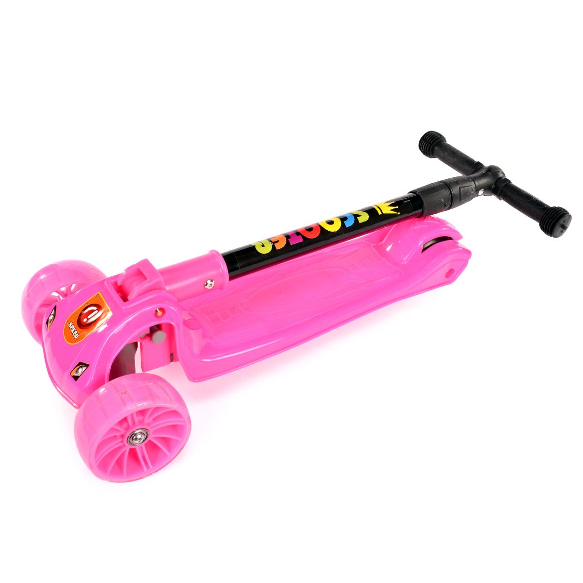 Самокат детский 3-колесный розовый, светящиеся колеса, регулируемая высота руля, для девочек от 3 лет