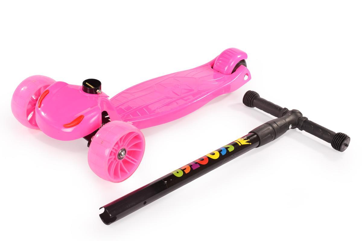 Самокат детский розовый, 3 колеса PU, свет/звук, регулировка 63-82см