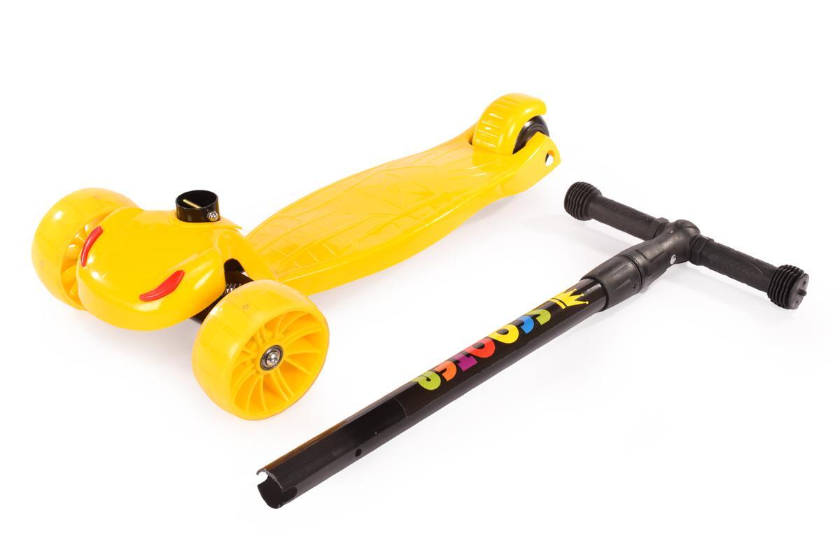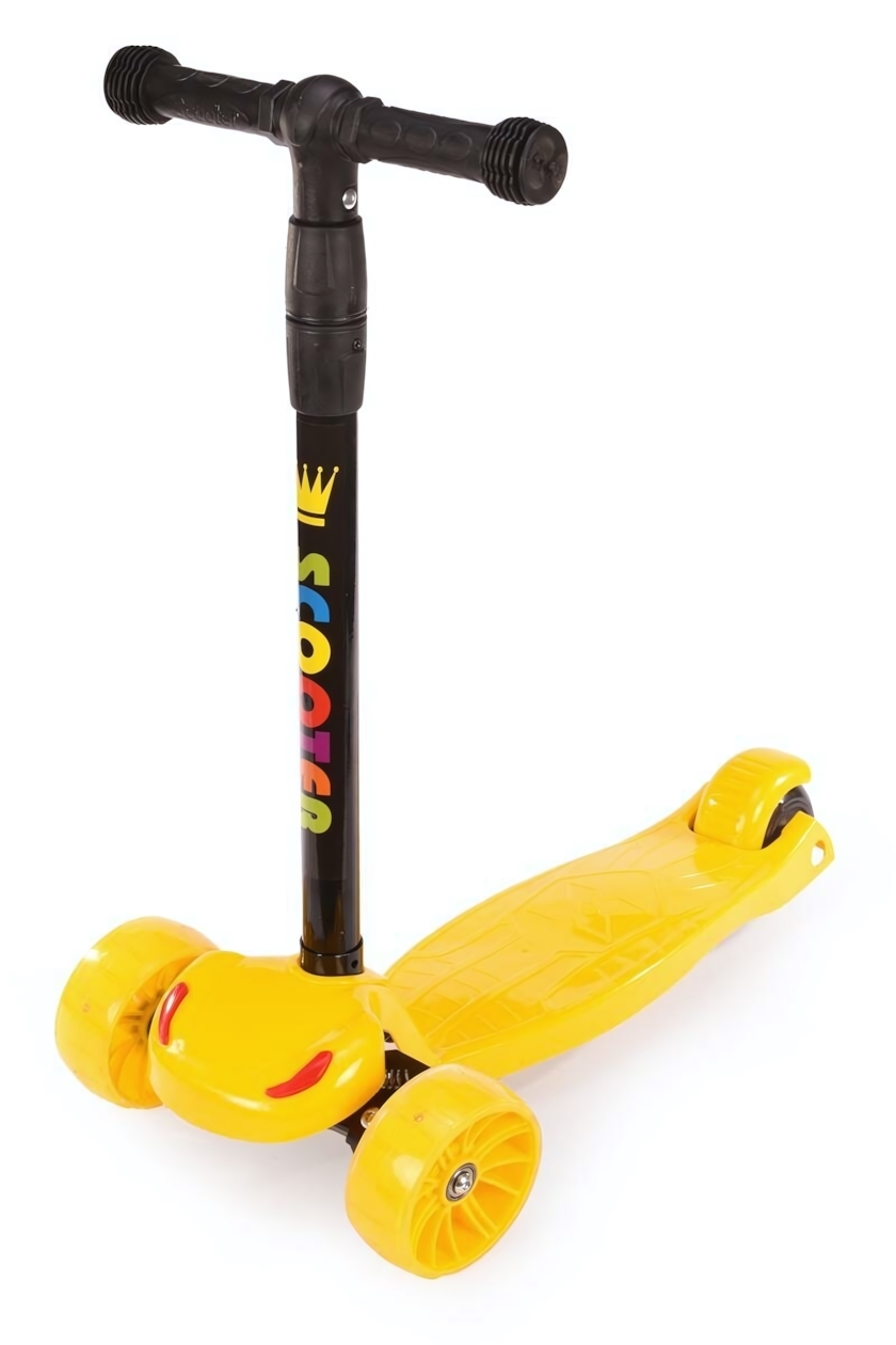 Самокат детский 3-колесный Toymix, желтый, свет+звук, регулируемая высота руля до 82 см