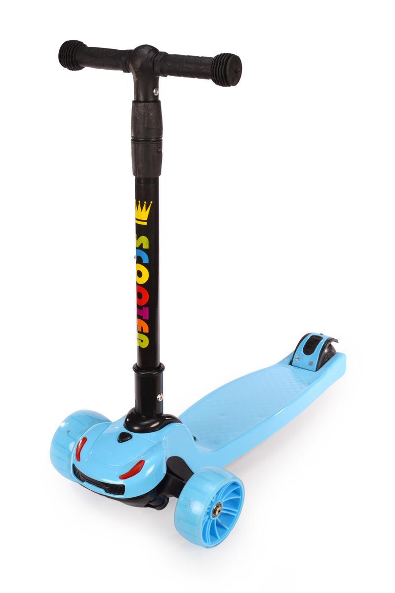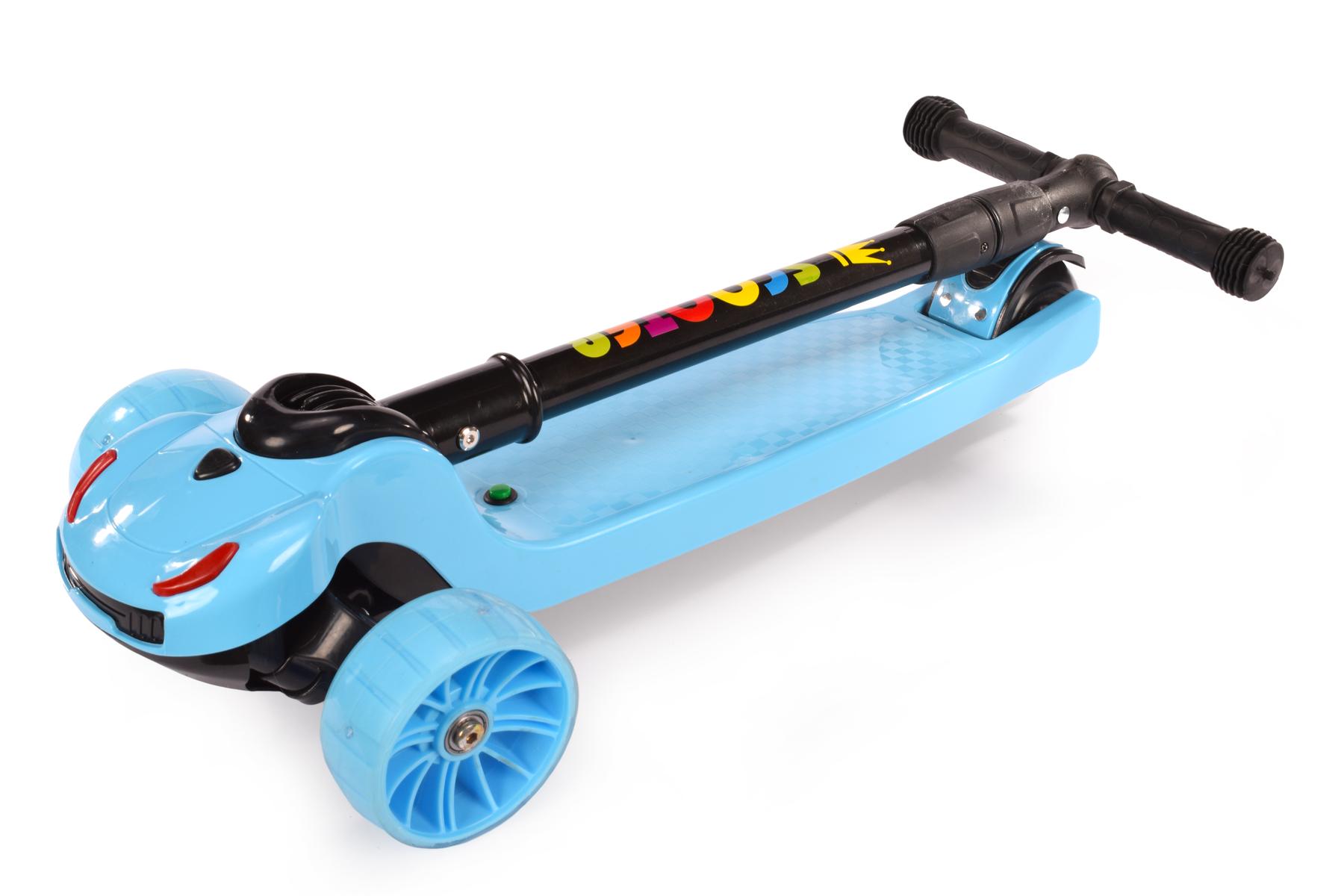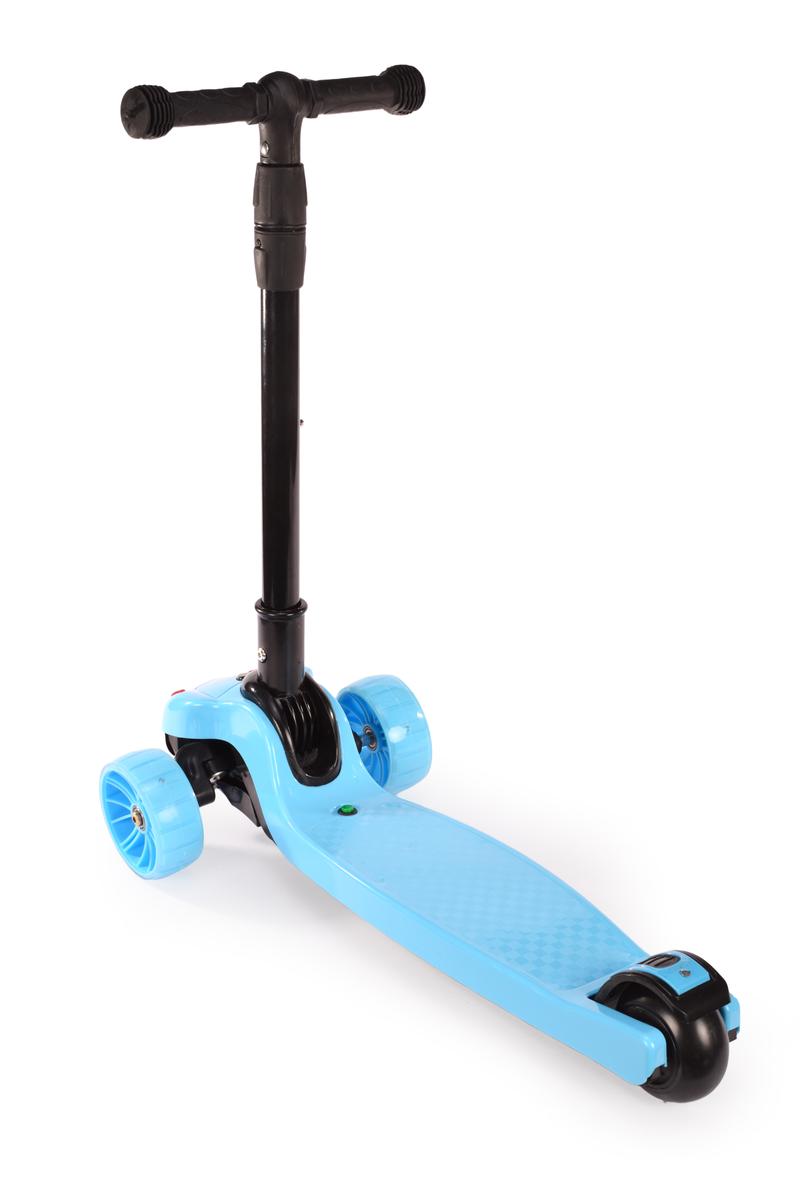 Самокат трехколесный голубой с подсветкой и музыкой, PU колеса, макс нагрузка 80 кг