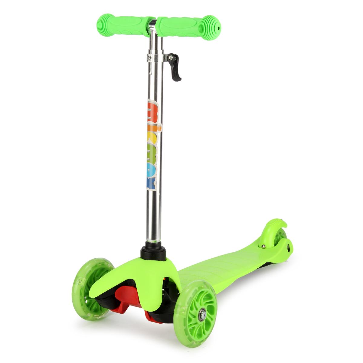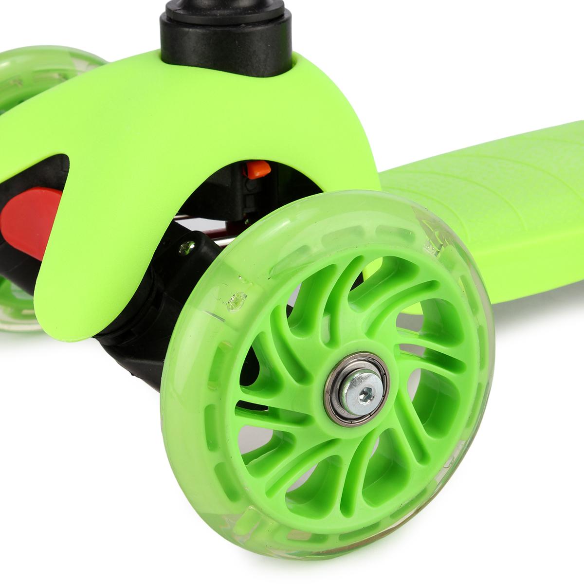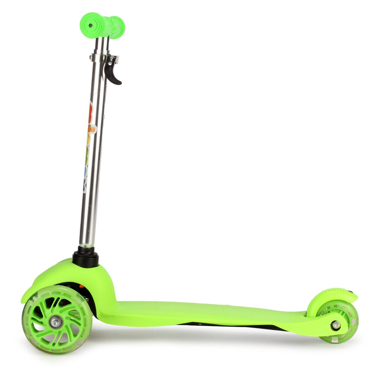 Самокат детский трехколесный, регулируемая ручка до 68 см, светящиеся PU колеса, до 30 кг, зеленый