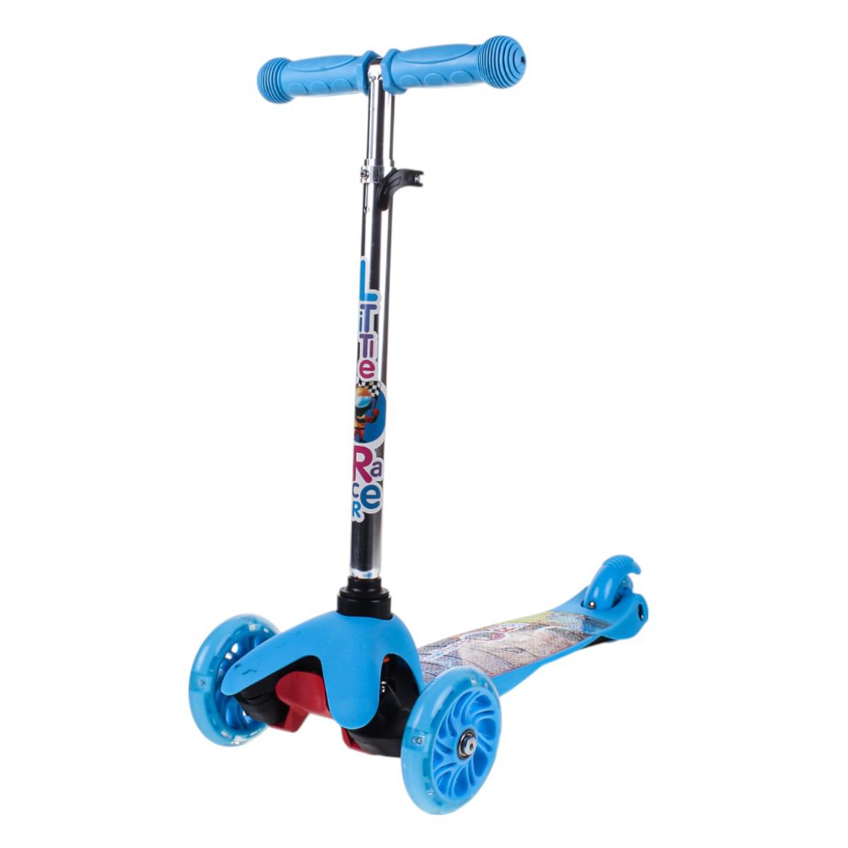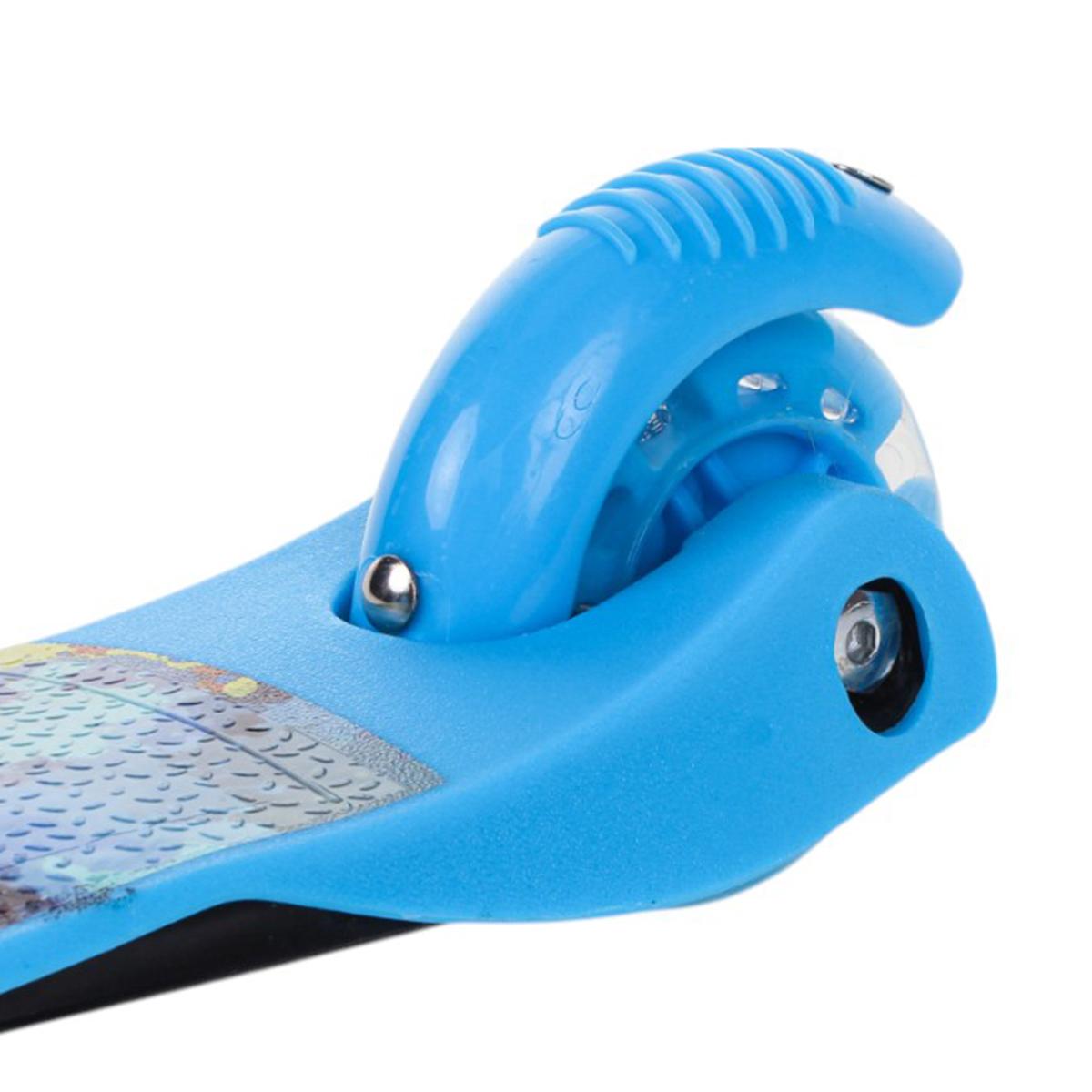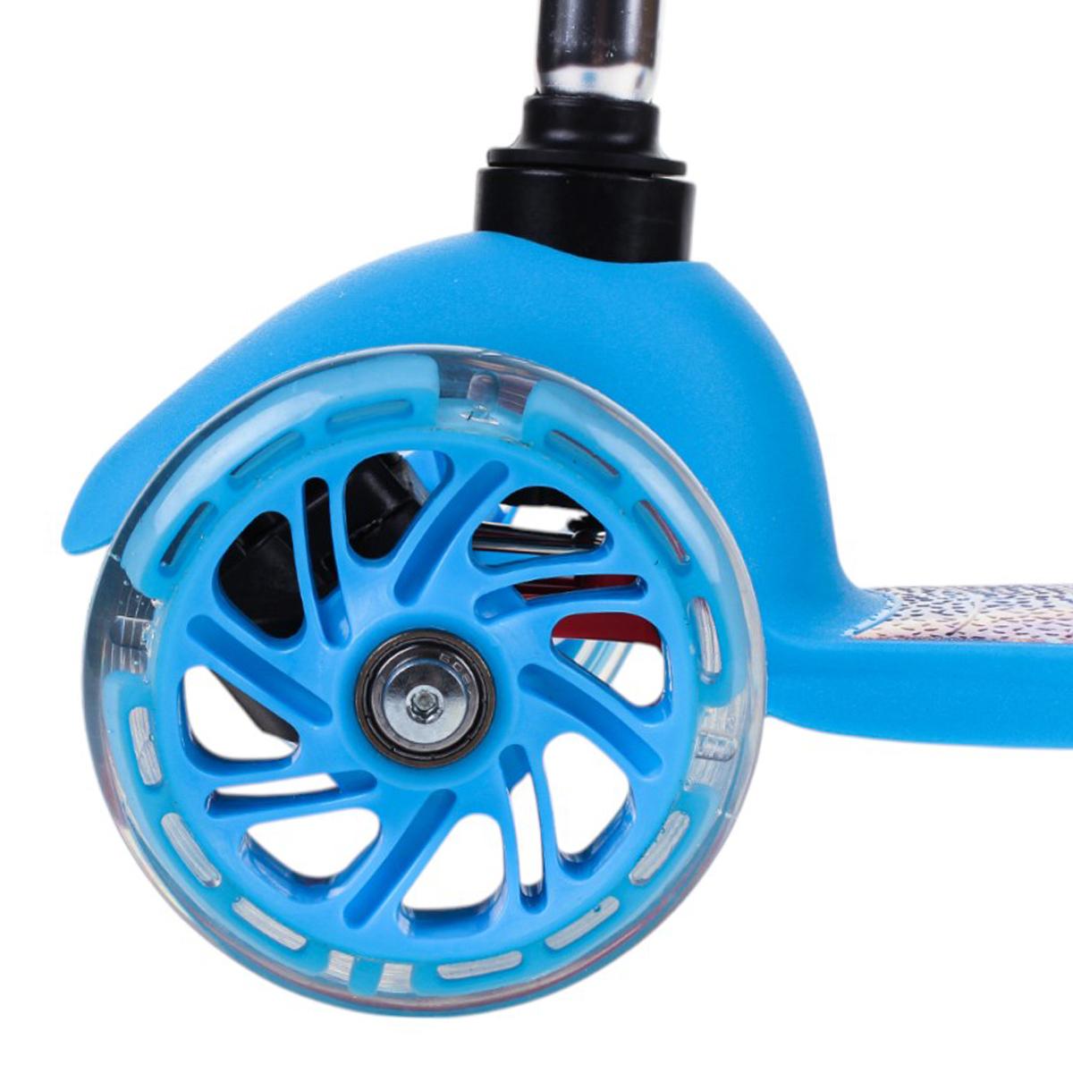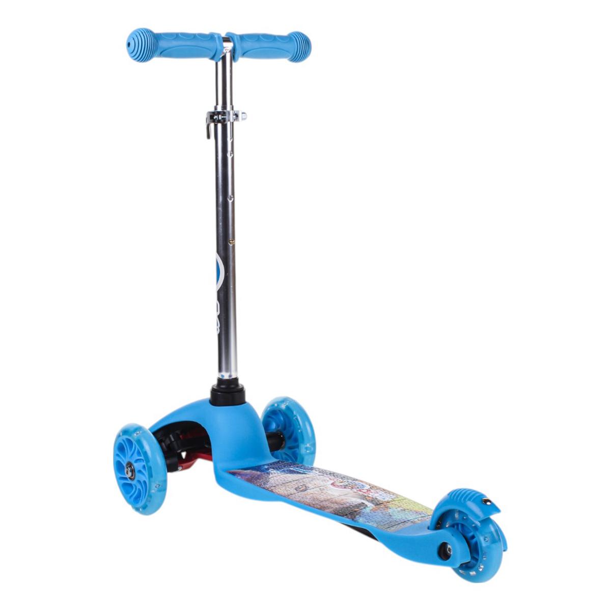 Самокат детский трехколесный, регулируемая ручка до 62 см, голубой, подсветка колес PU, нагрузка 45 кг