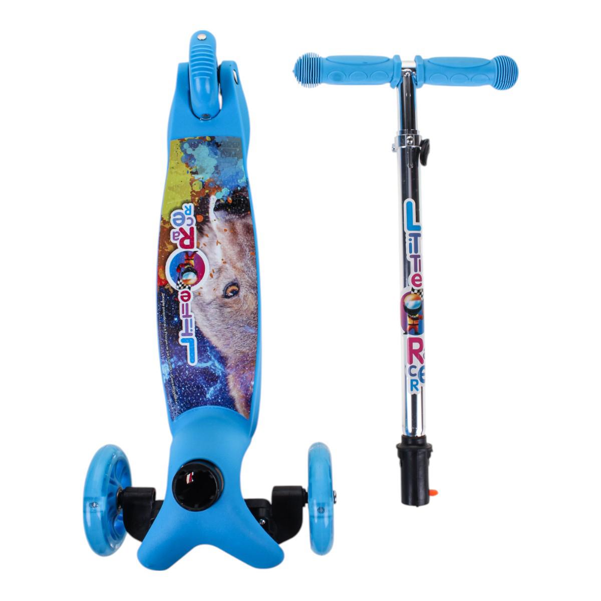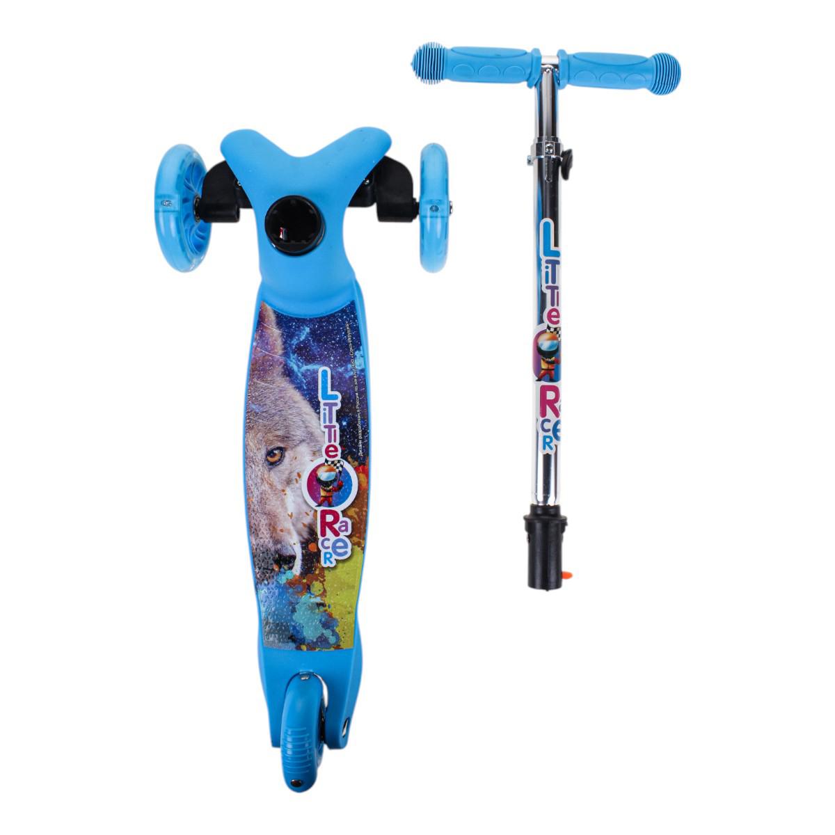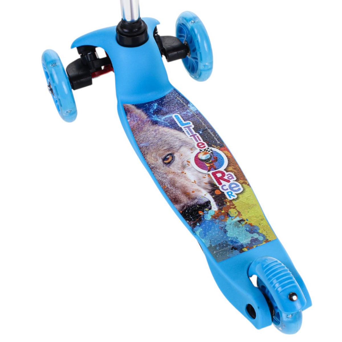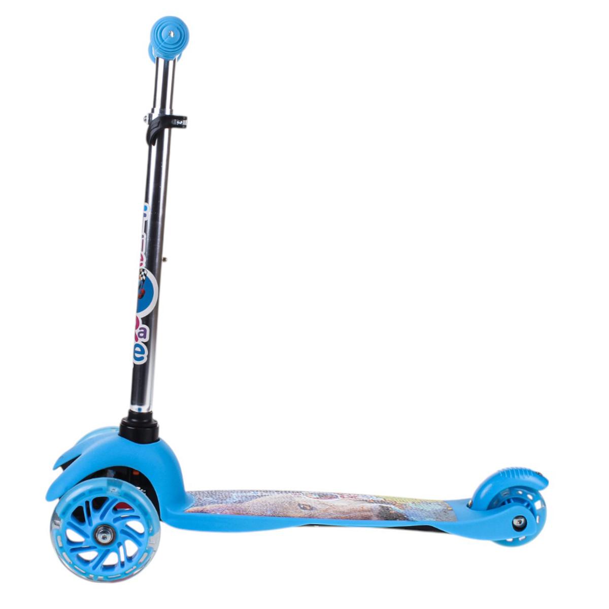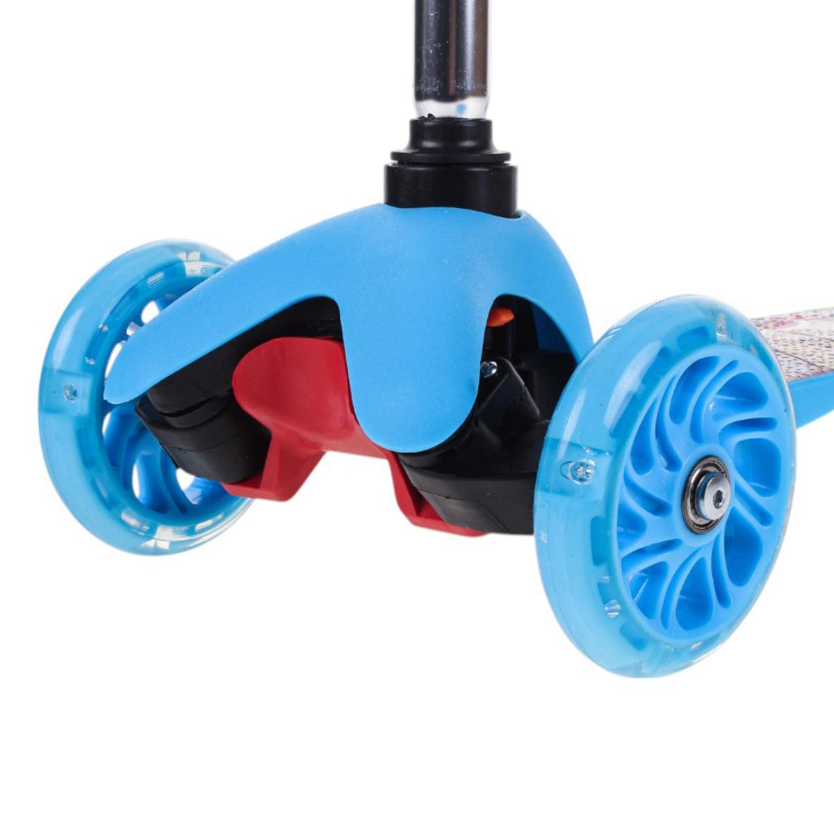 Самокат детский трехколесный, регулируемая ручка до 62 см, голубой, подсветка колес PU, нагрузка 45 кг