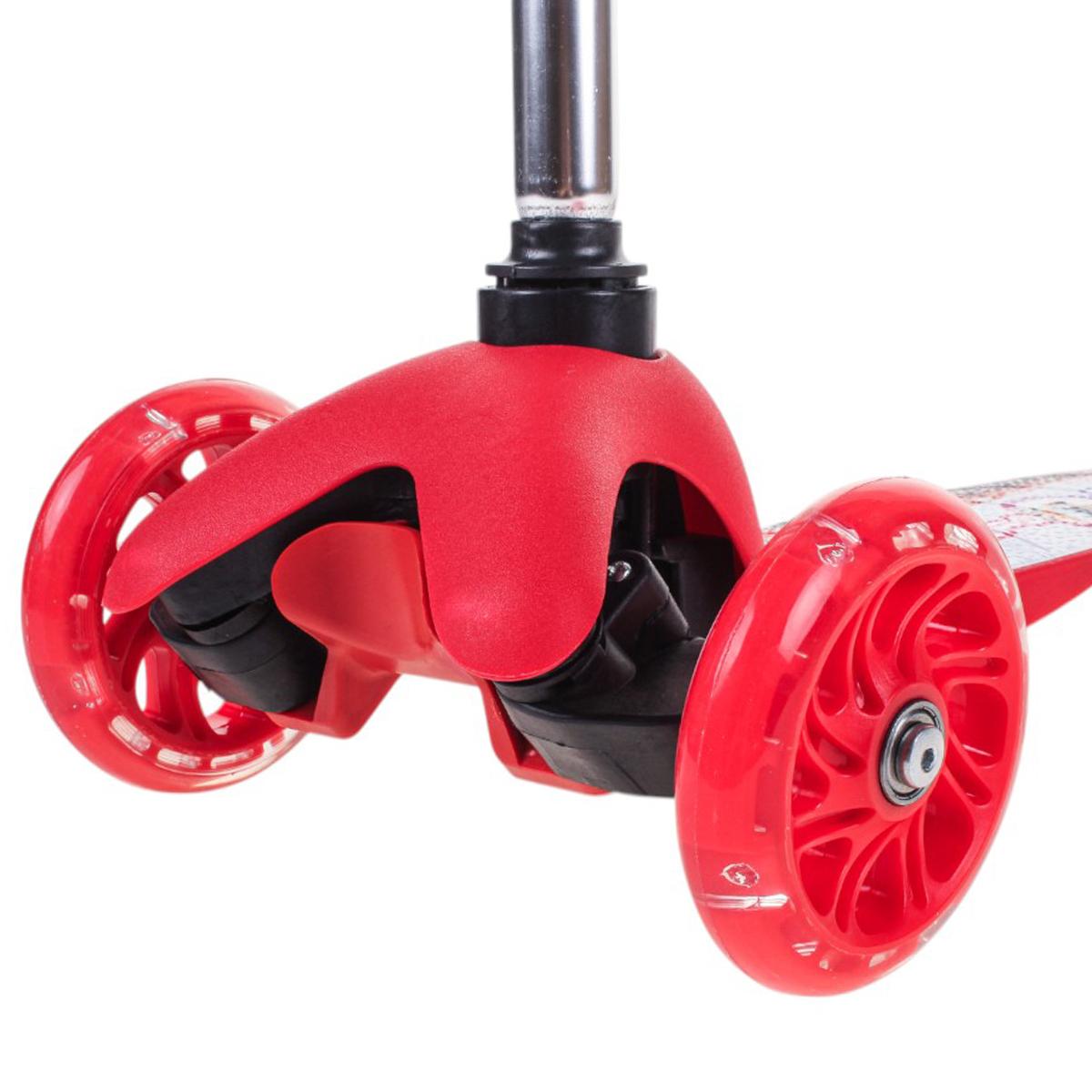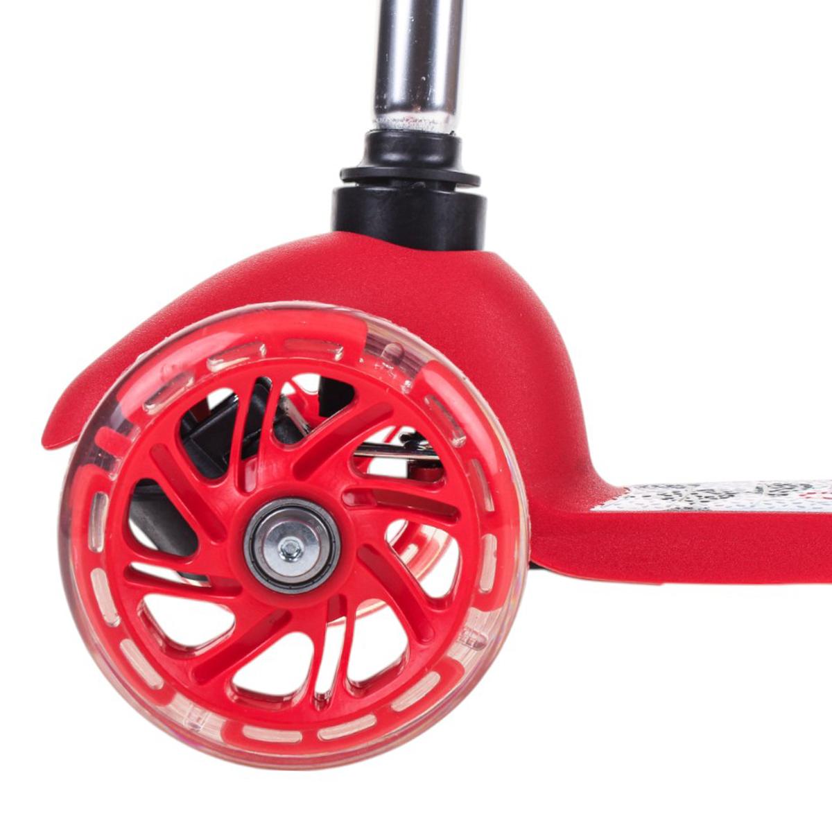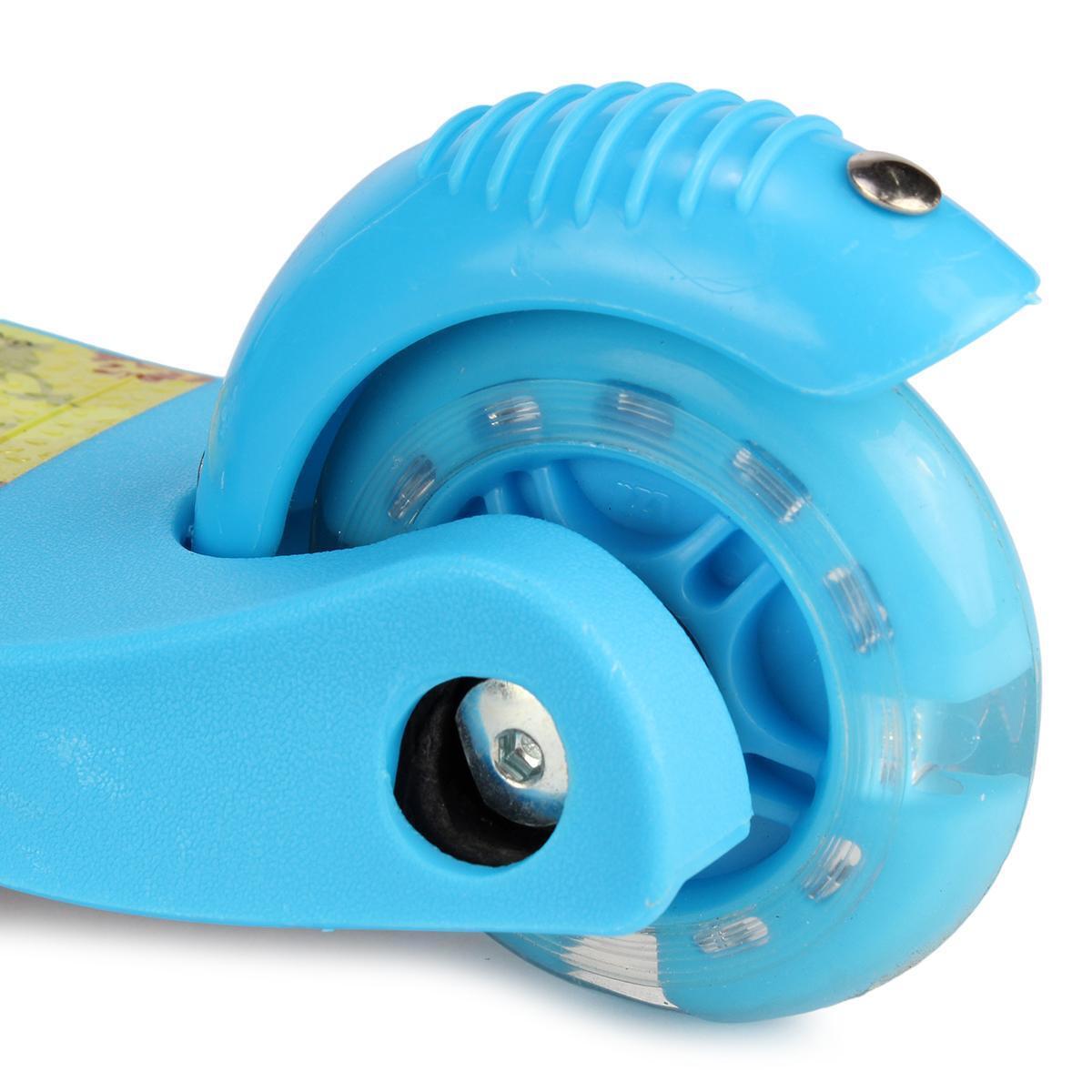Яркий самокат с безопасными светящимися колесами создан для комфортных прогулок детей до 7 лет.