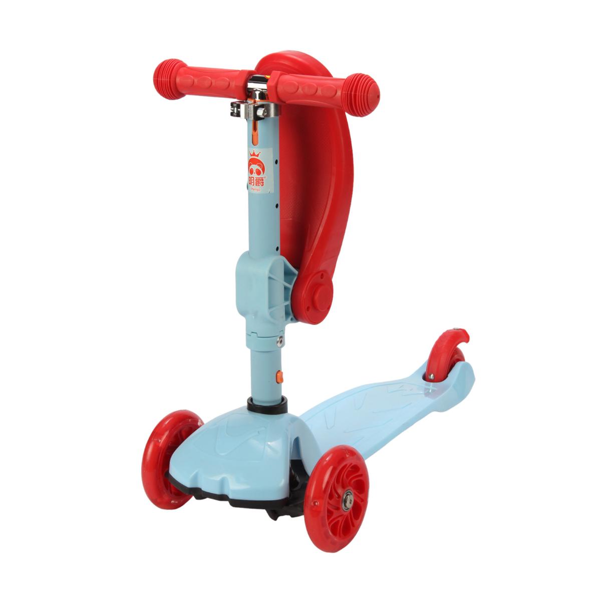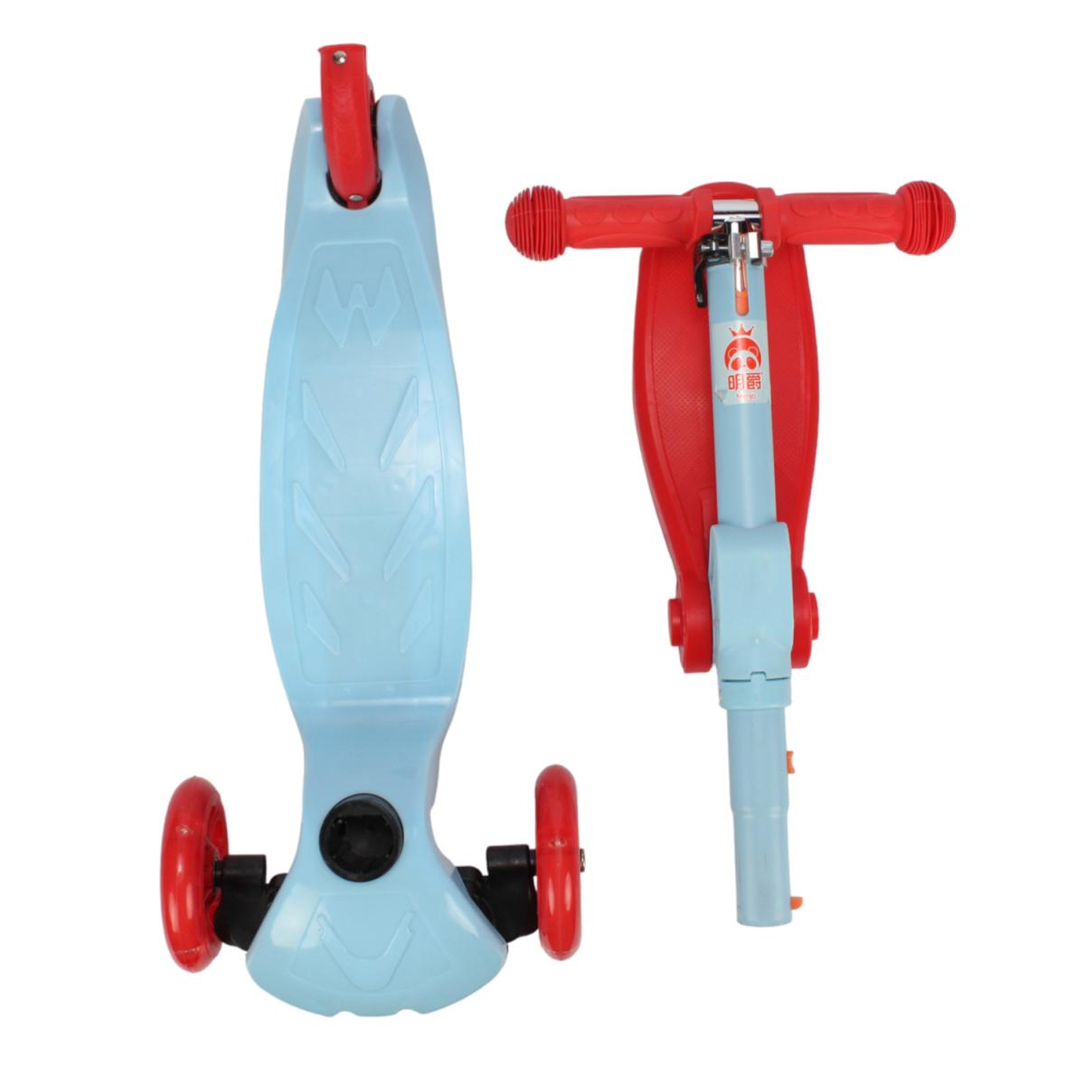 Самокат трехколесный с подсветкой, PU колеса, голубой/красный, до 50кг