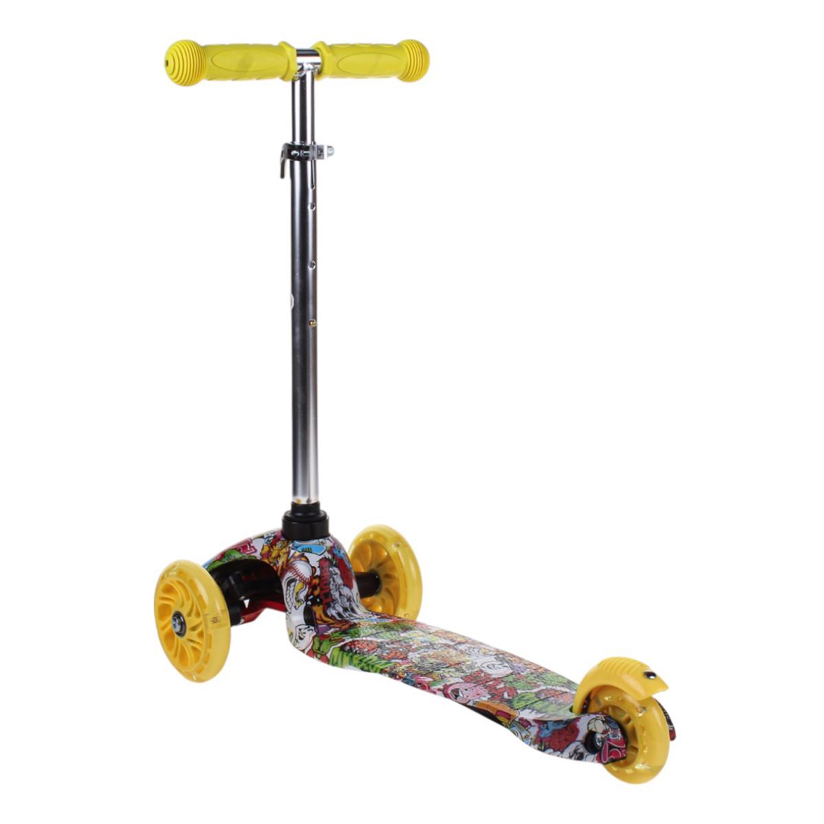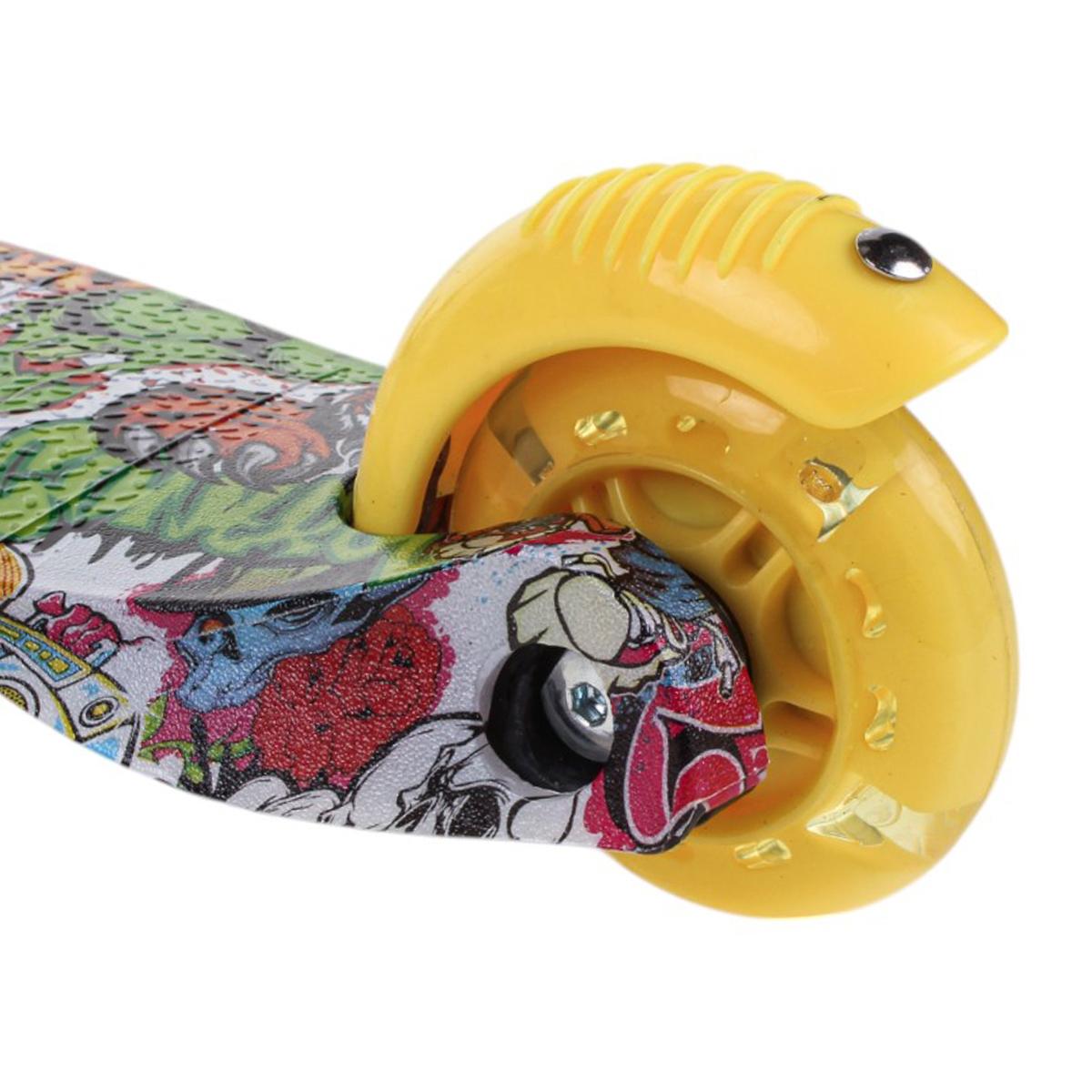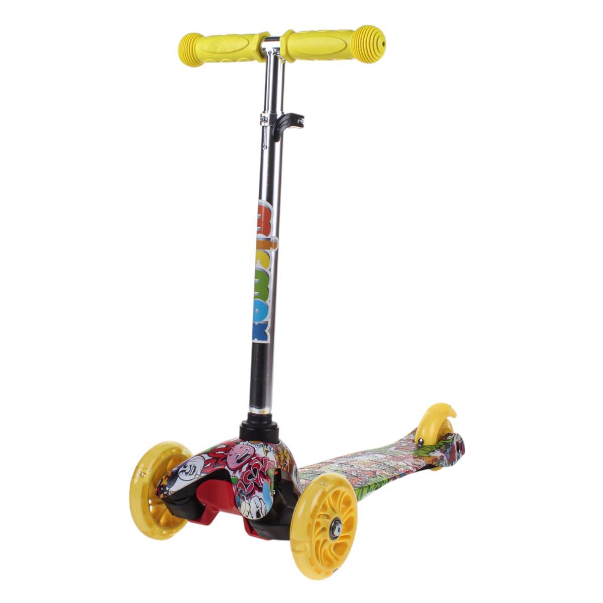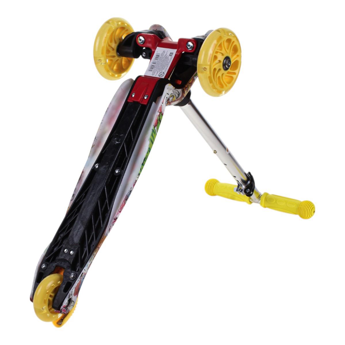 Самокат трехколесный детский, платформа 55см, высота ручки до 62см, желтый/зеленый, колеса PU с подсветкой