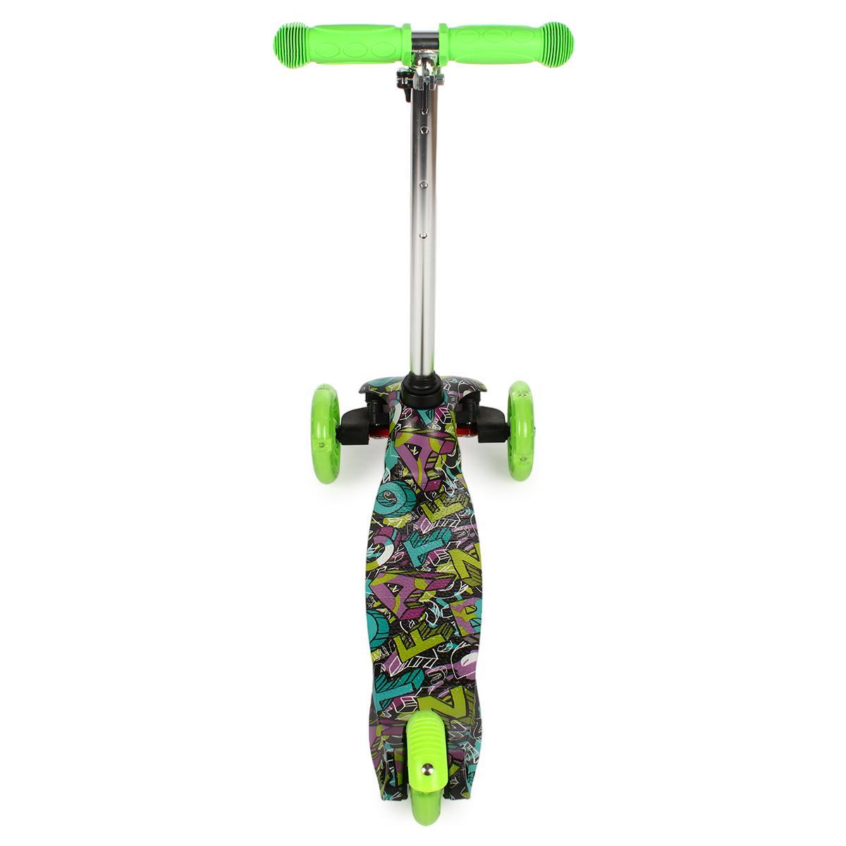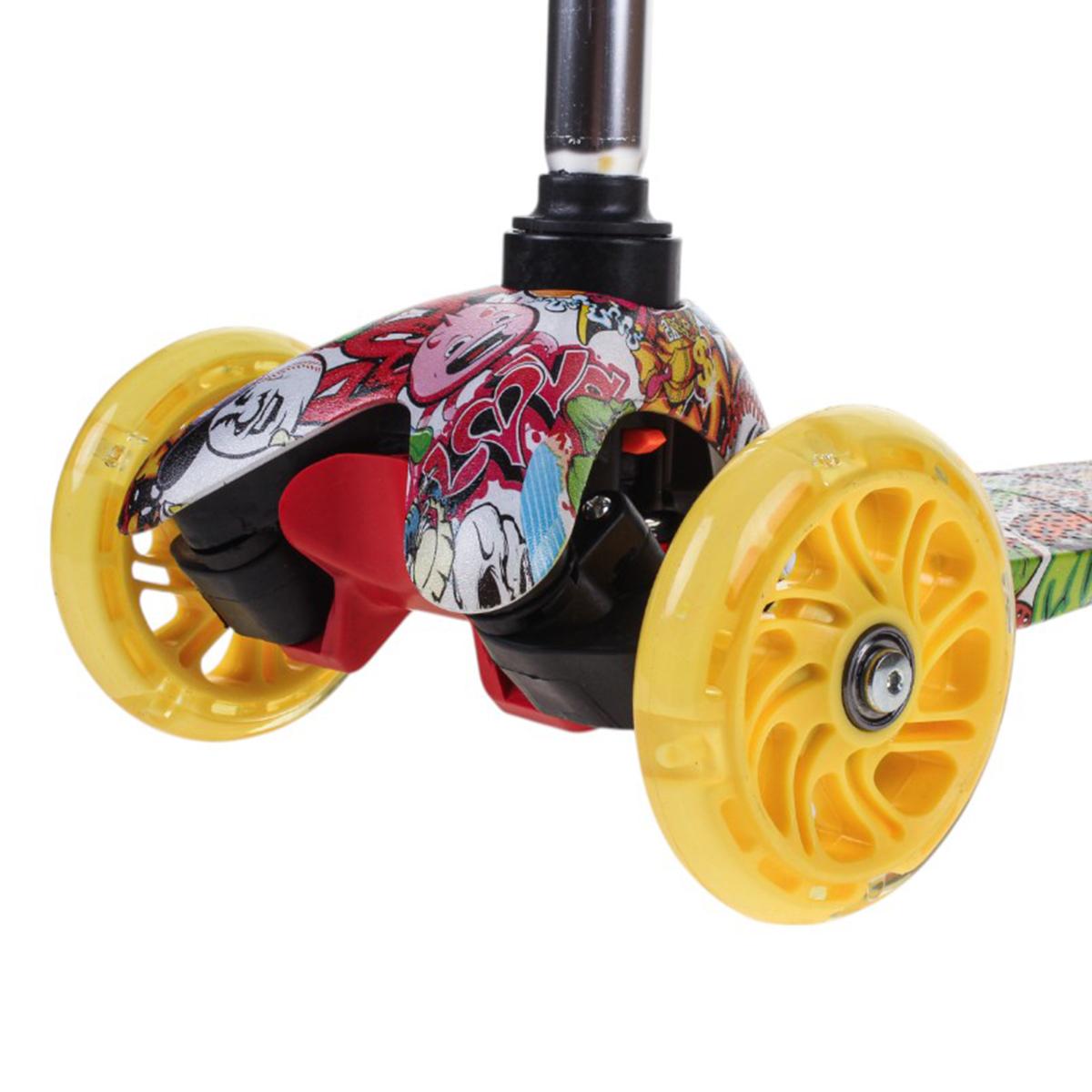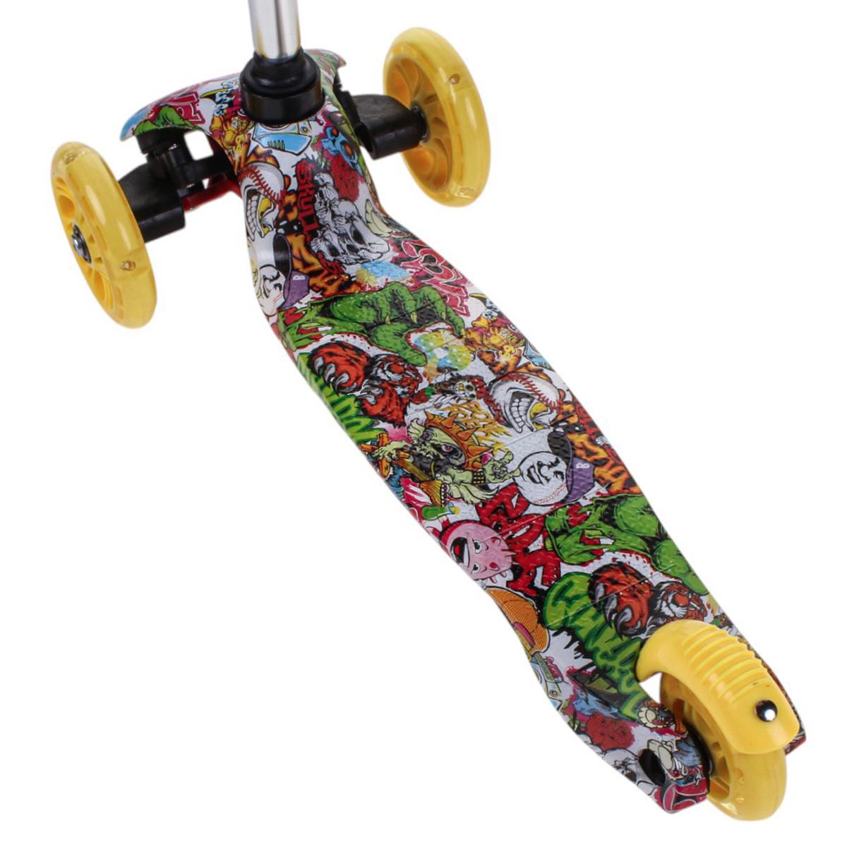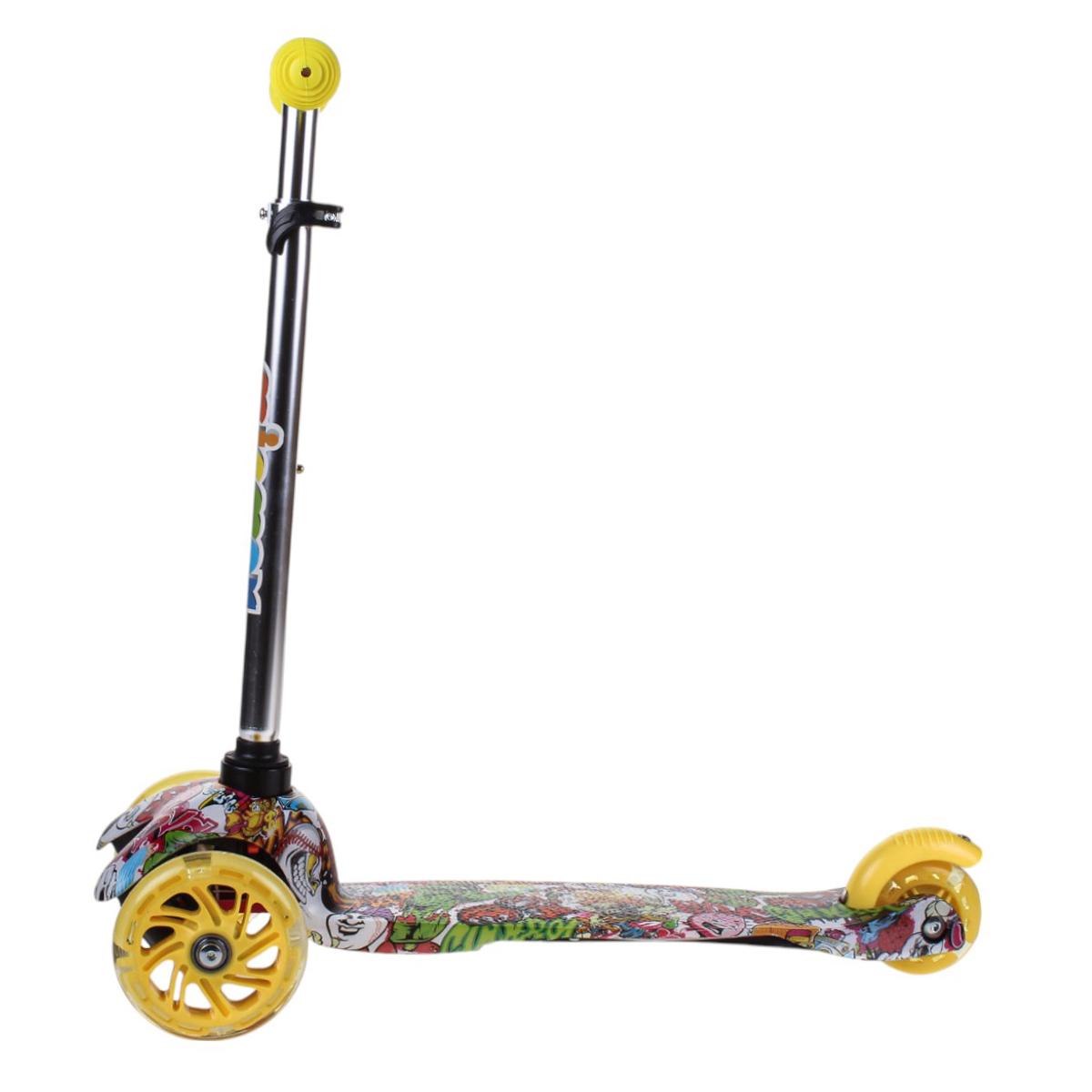 Самокат трехколесный детский, платформа 55см, высота ручки до 62см, желтый/зеленый, колеса PU с подсветкой