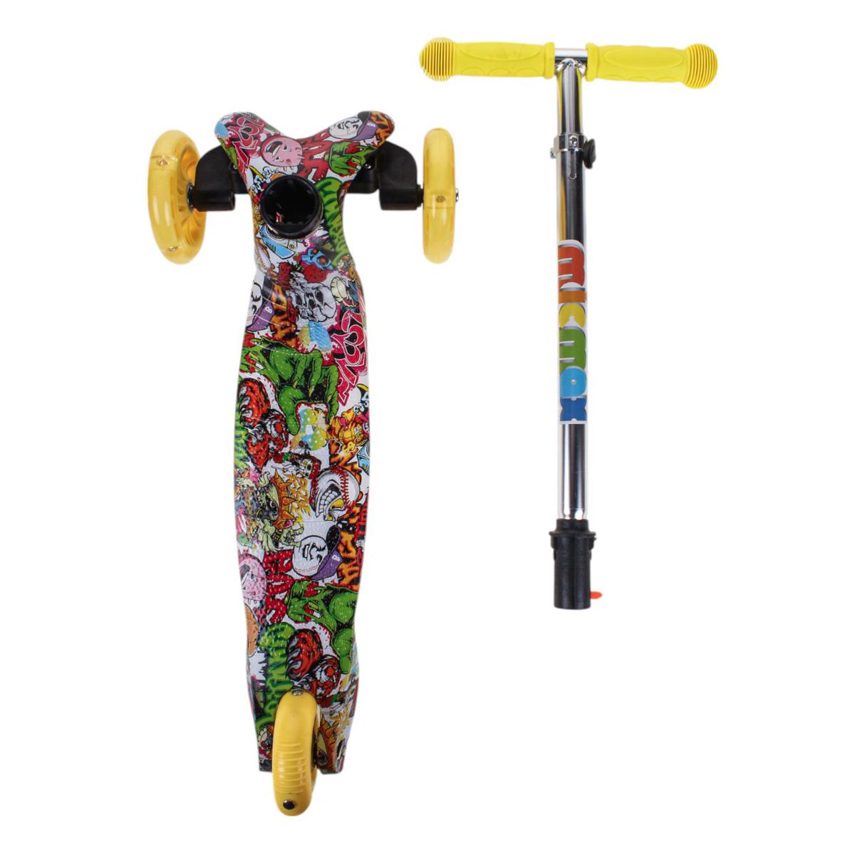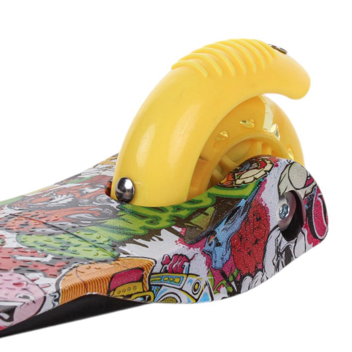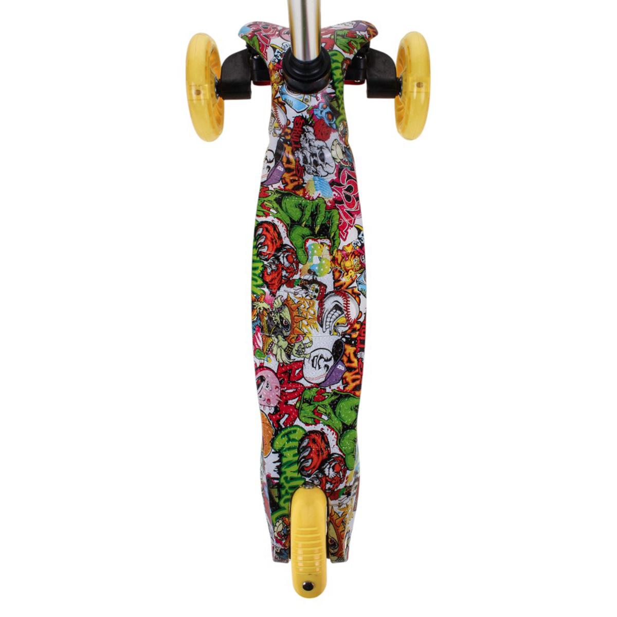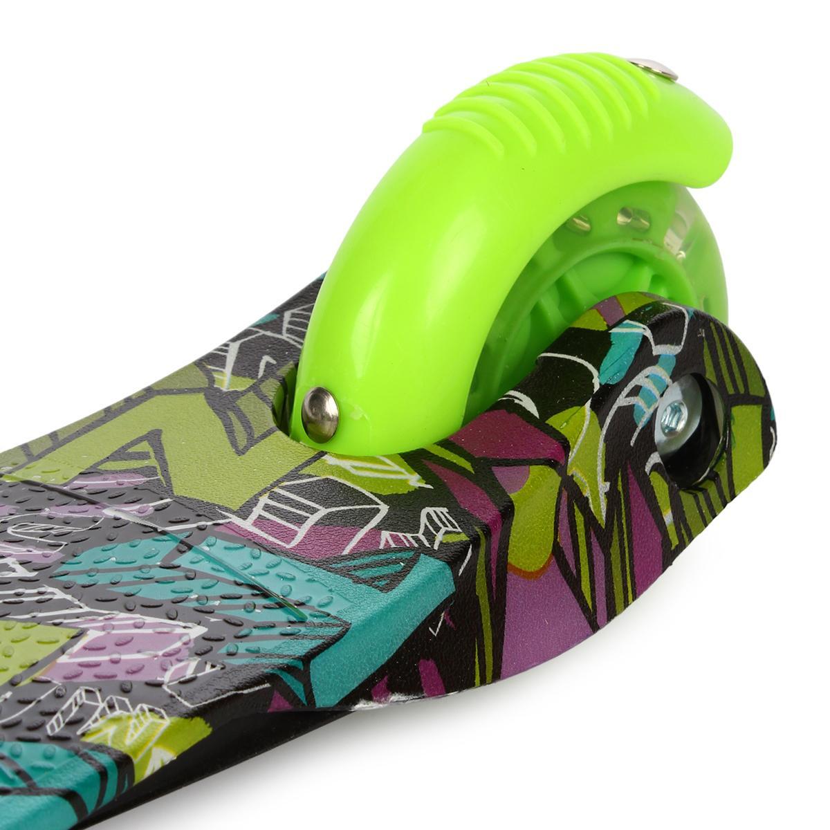 Самокат трехколесный детский, платформа 55см, высота ручки до 62см, желтый/зеленый, колеса PU с подсветкой