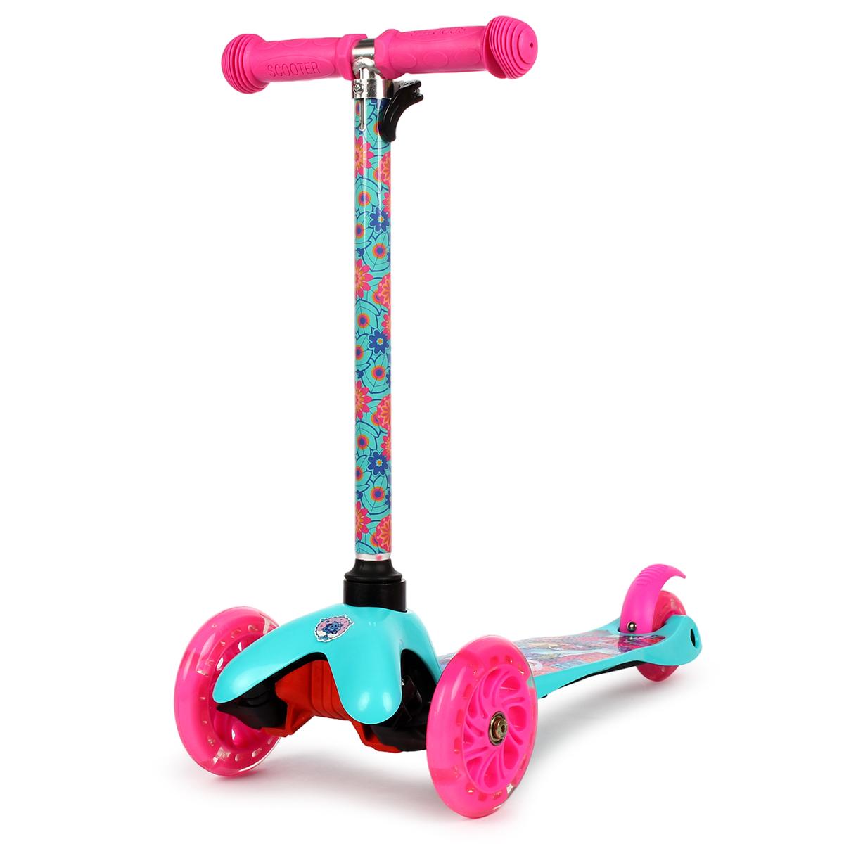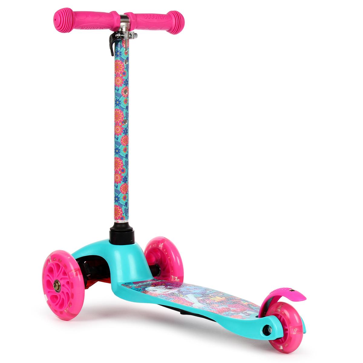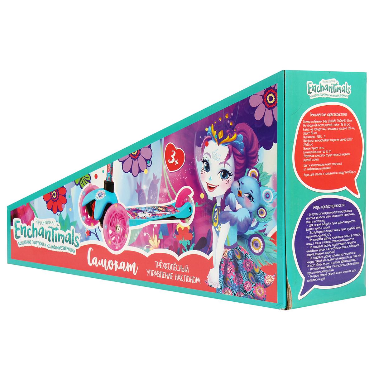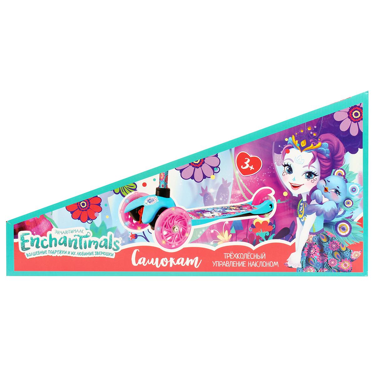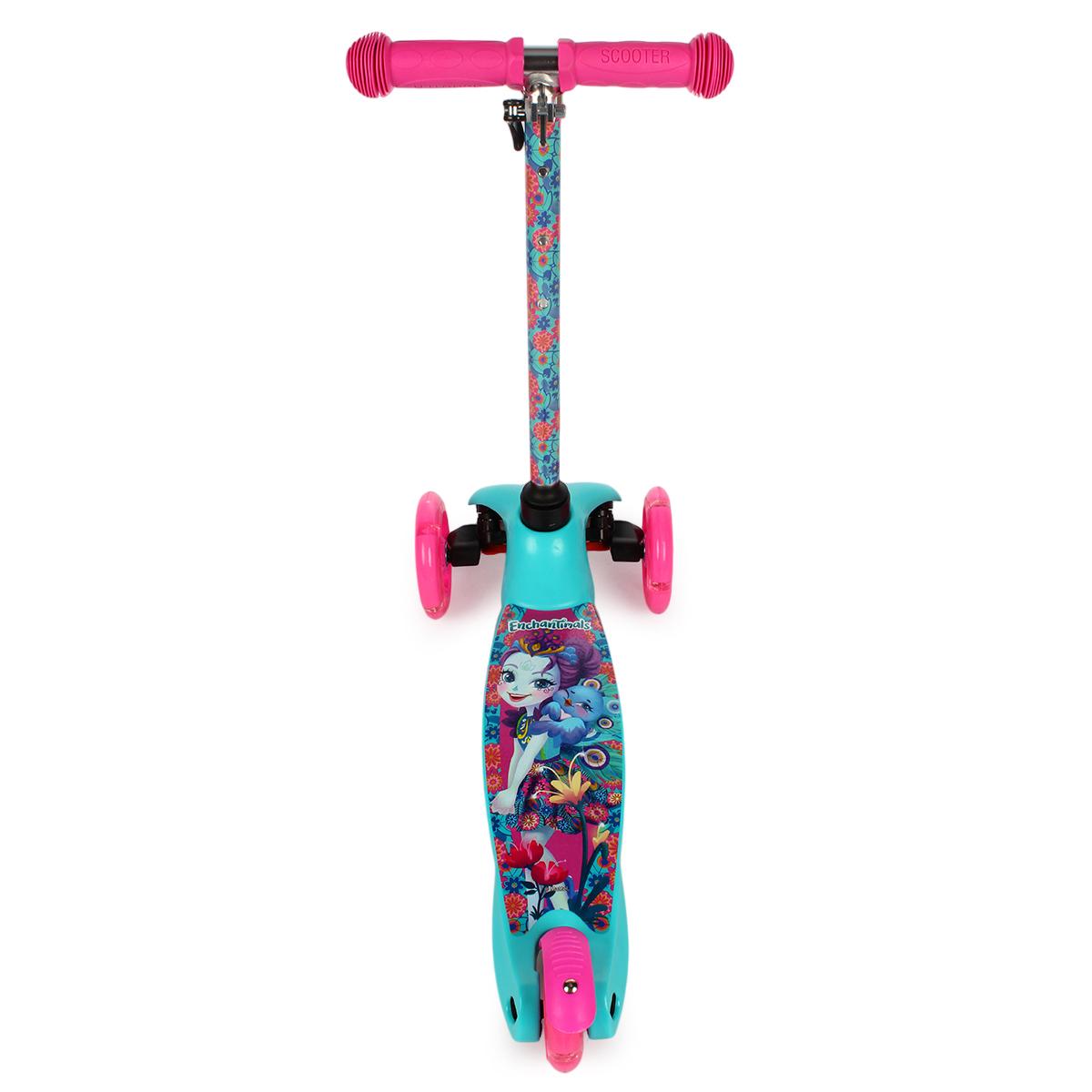 Детский трёхколёсный самокат «Enchantimals» с подсветкой колёс, регулируемый руль 48-66 см, платформа 29х11 см