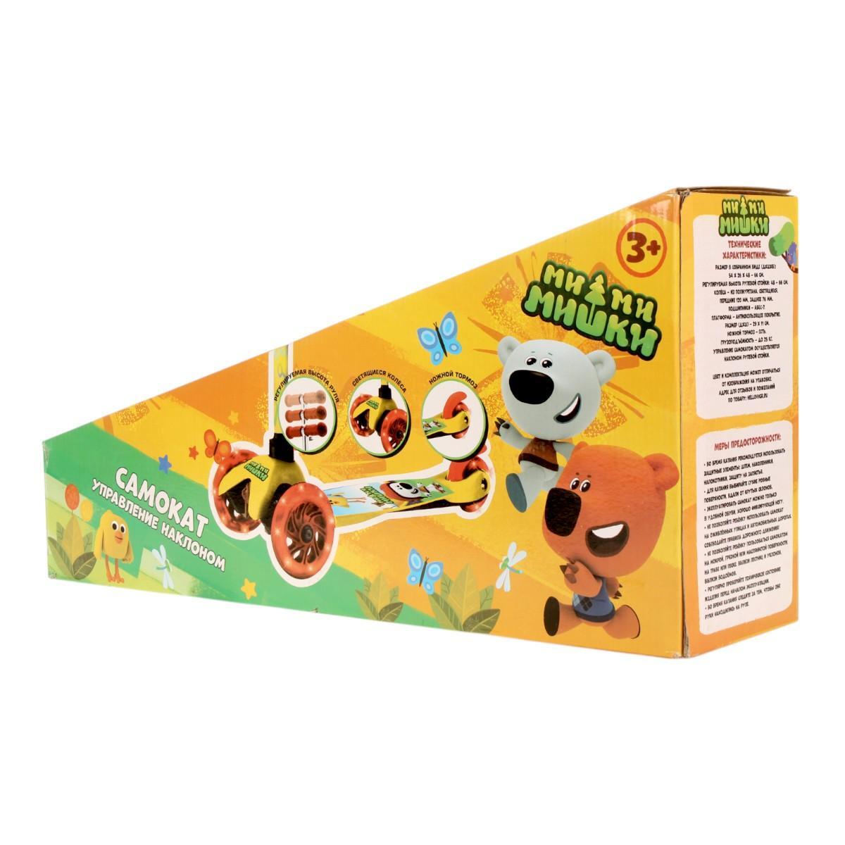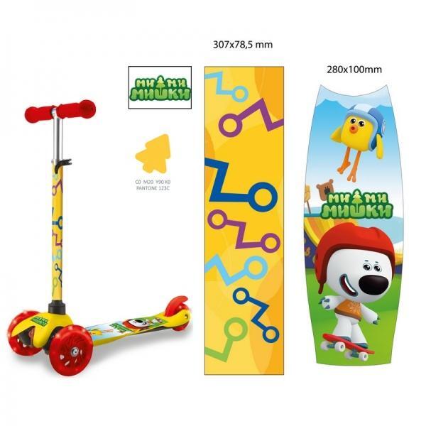 Самокат детский 'Ми-ми-мишки', 3 колеса, регулируемый руль, желтый/красный