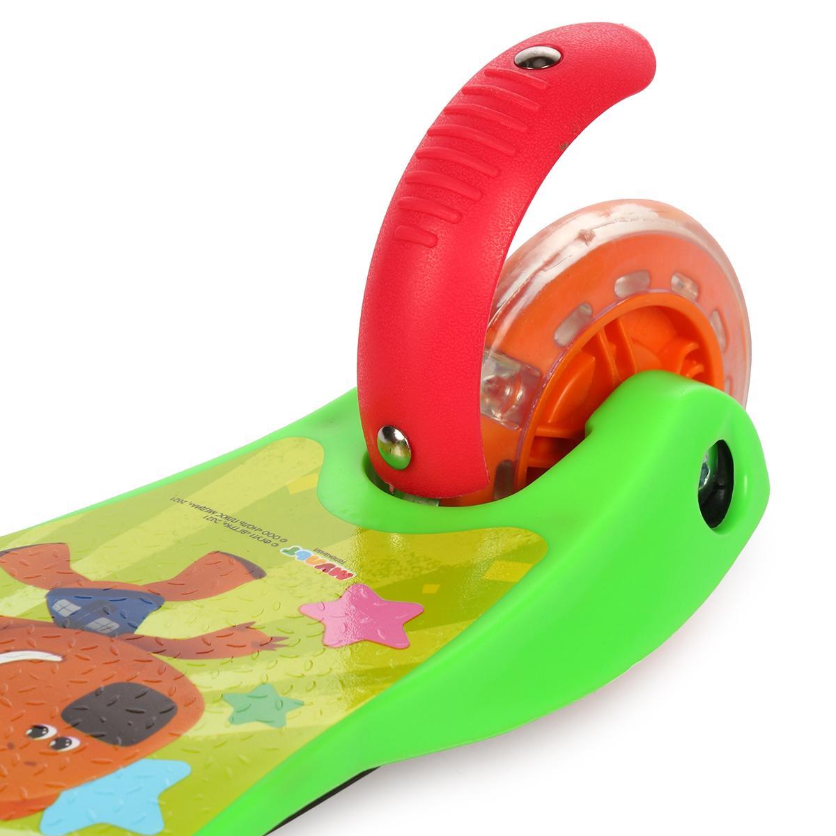 Яркий трёхколёсный самокат с подсветкой колёс и любимыми персонажами станет идеальным спутником активных игр. Устойчивая конструкция с широкой платформой и эргономичным рулём обеспечивает комфортное катание даже для самых маленьких.