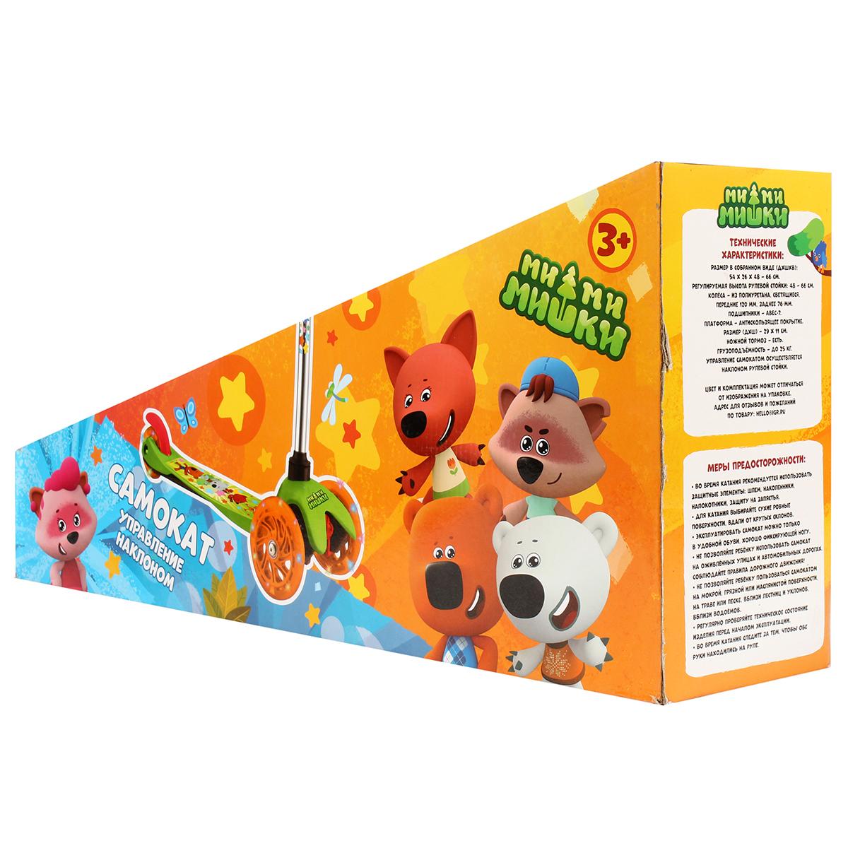 Детский трёхколёсный самокат «Ми-ми-мишки», колёса 120/90 мм с подсветкой, антискользящая платформа