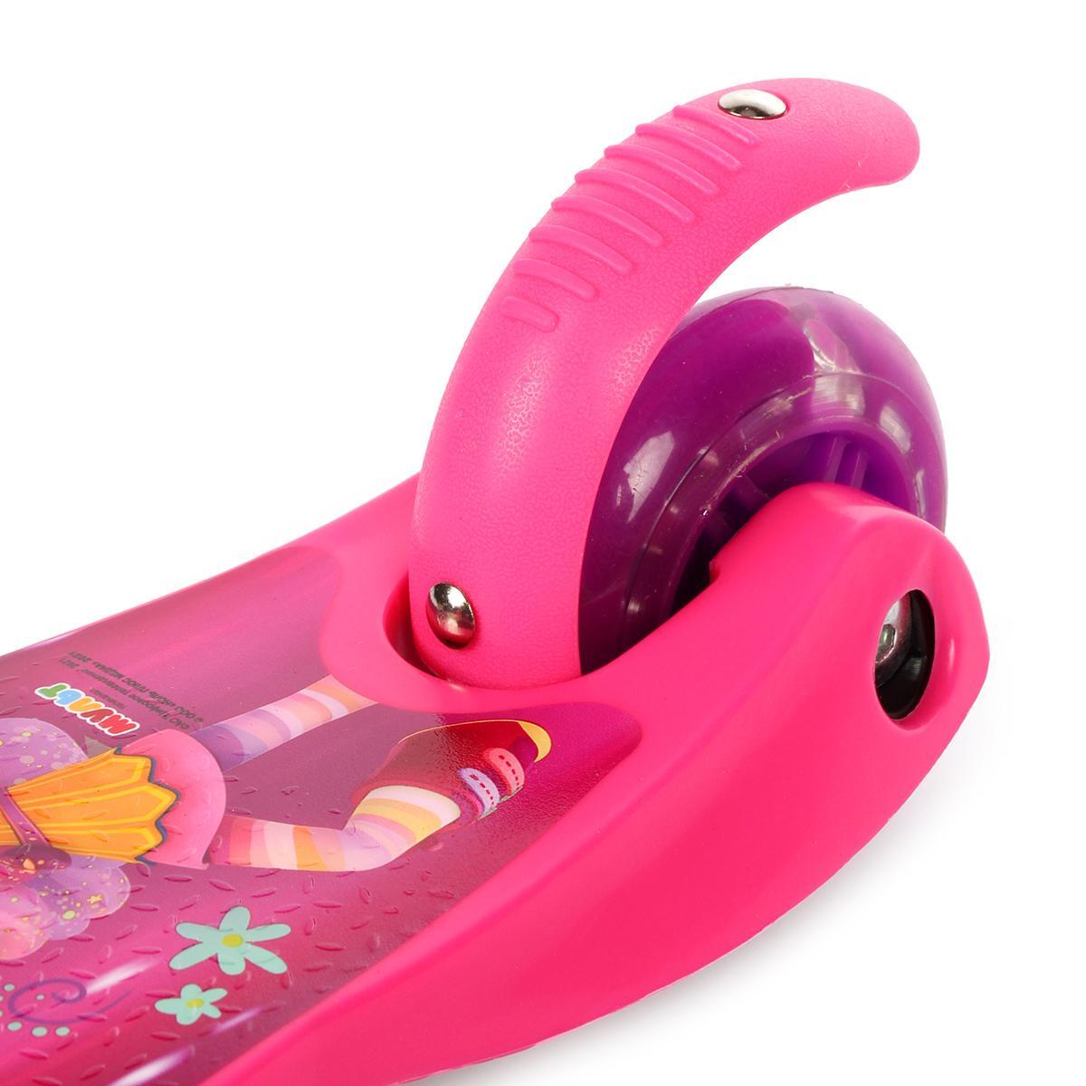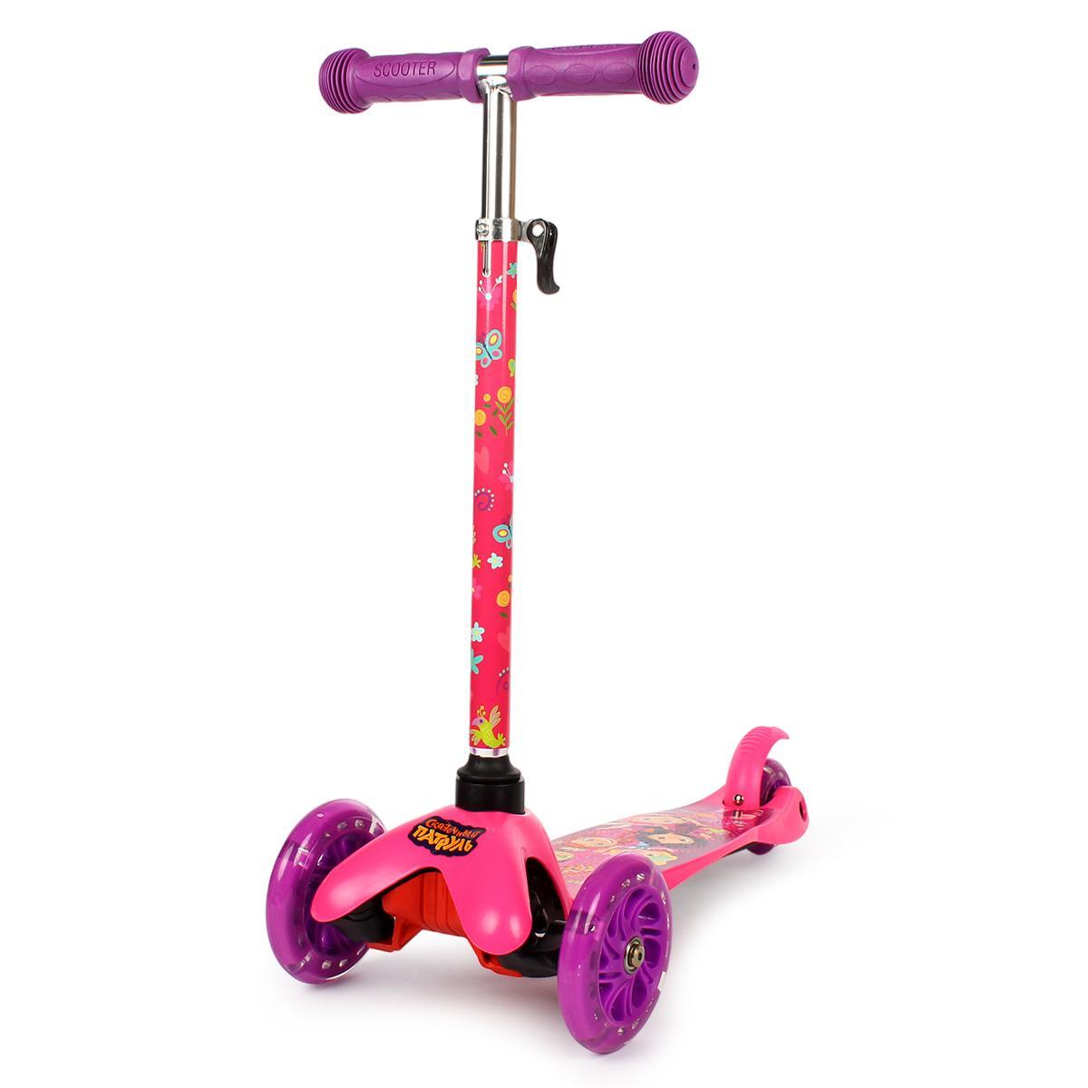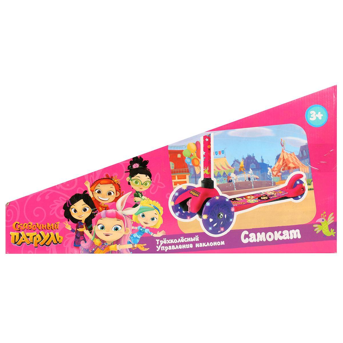 - Яркий дизайн: Розовый цвет, фиолетовые детали и изображения персонажей "Сказочного патруля" делают самокат привлекательным для детей.