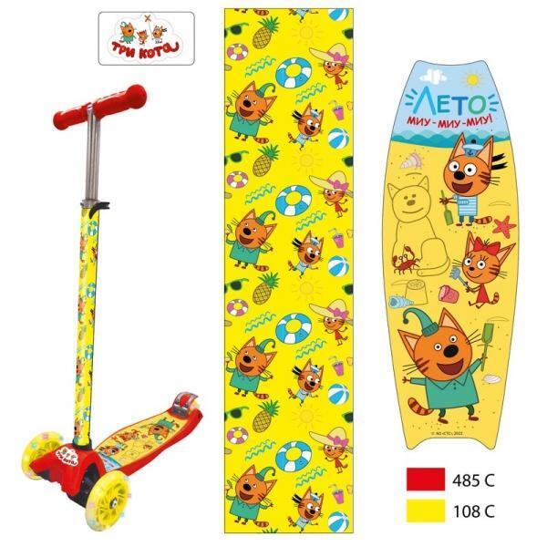 Самокат 3-колесный «Три кота», регулируемая ручка, колеса 120/80 мм, металл/пластик