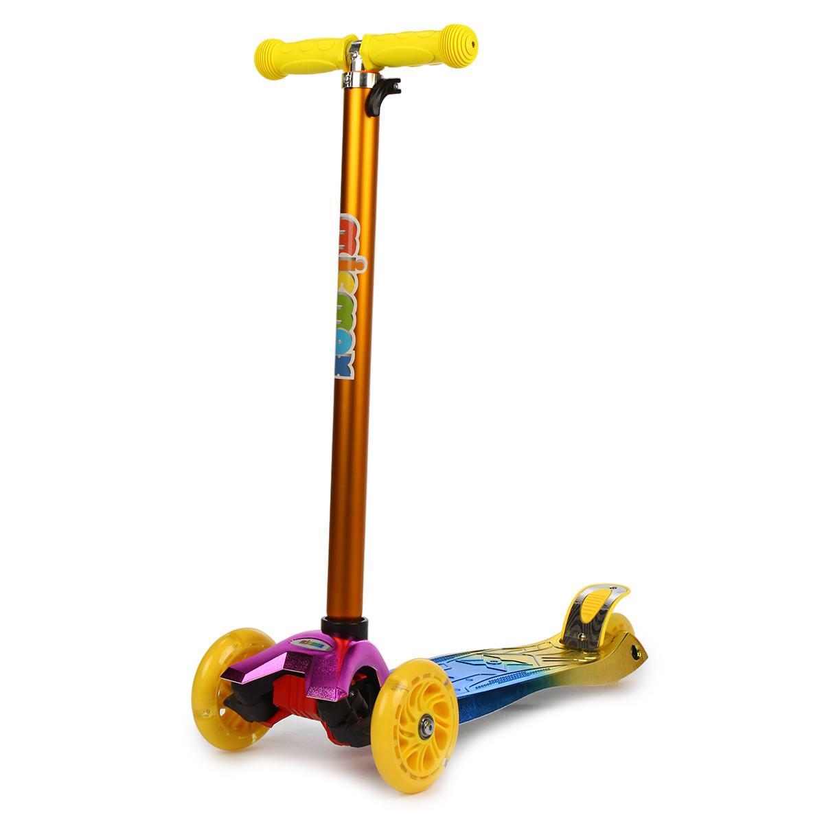Детский трехколесный самокат со светящимися колесами и регулируемым рулем