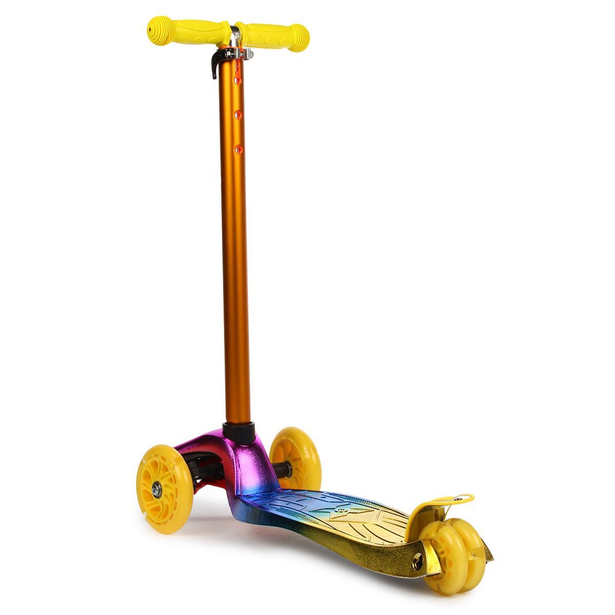 Самокат детский трехколесный, регулируемая ручка 78-87 см, светящиеся колеса PU, тормоз, до 60 кг