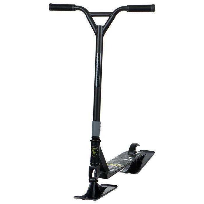 Для сборки не требуются инструменты — все элементы соединяются при помощи надежных клипс. Самокат-снегокат подходит для детей от 6 лет и подростков благодаря регулируемой рулевой колонке. Черный цвет с контрастной графикой сохраняет презентабельный вид даже при активной эксплуатации.