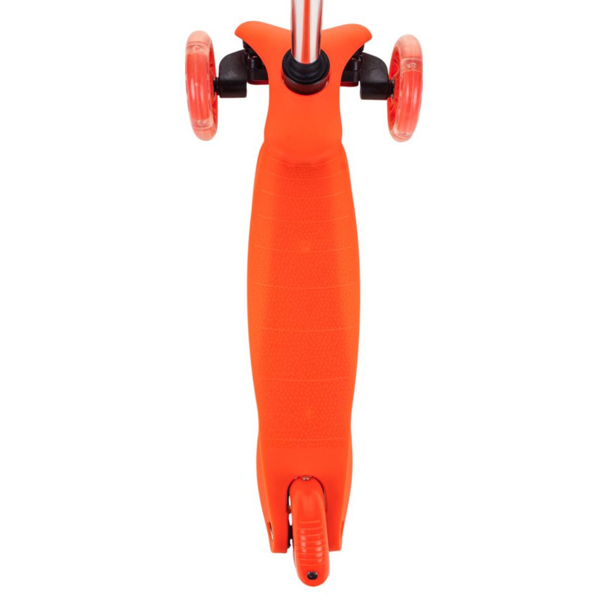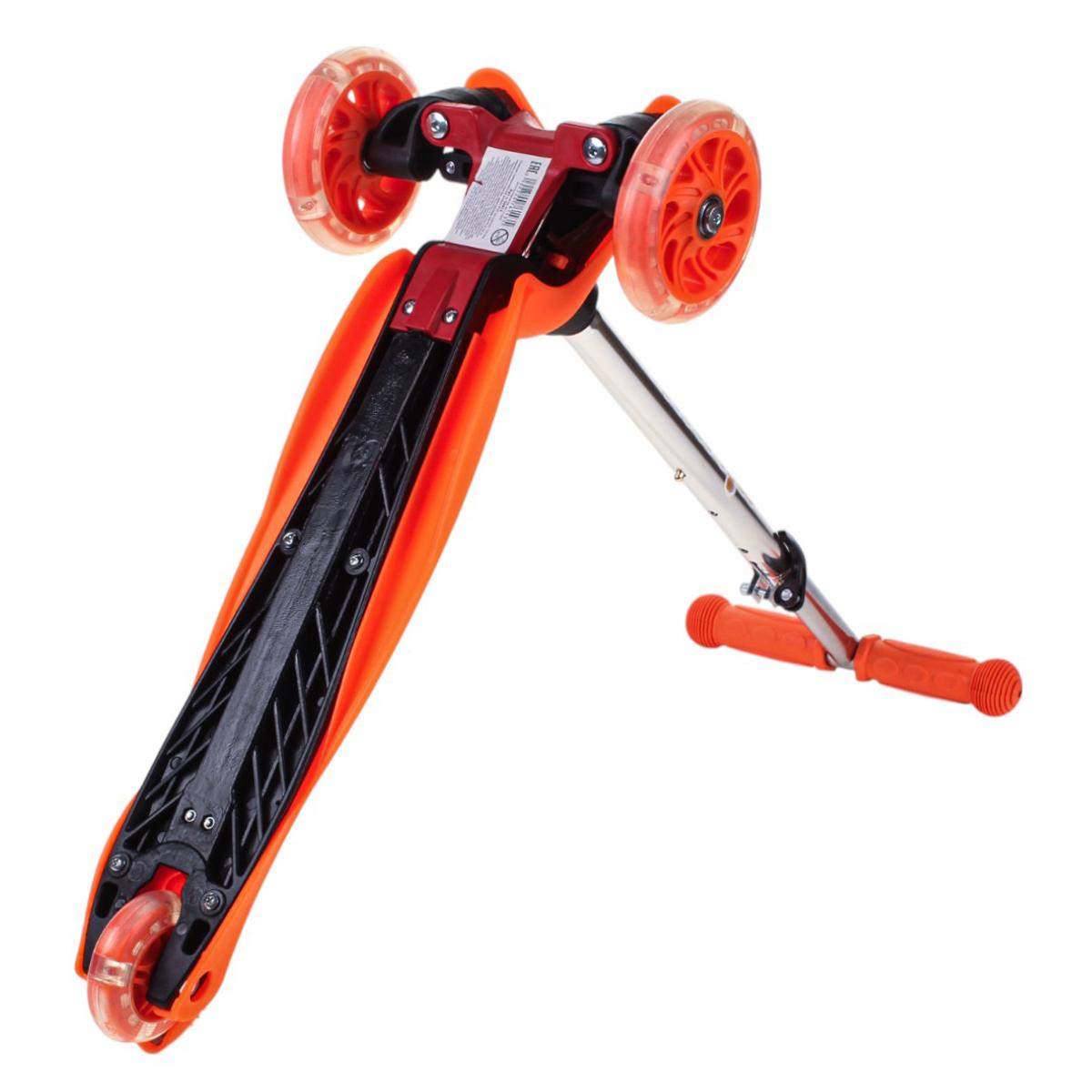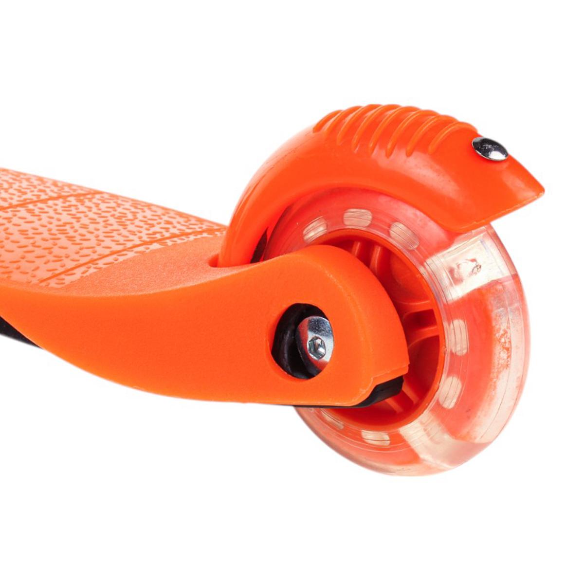 Самокат трехколесный детский с подсветкой колес, оранжевый, регулируемый руль, PVC 110 мм, тормоз задний