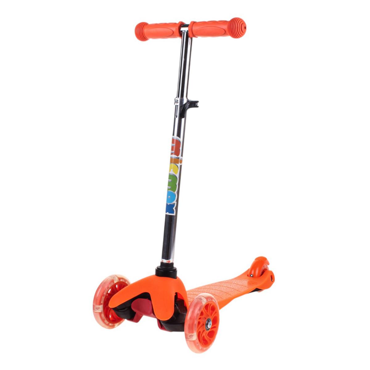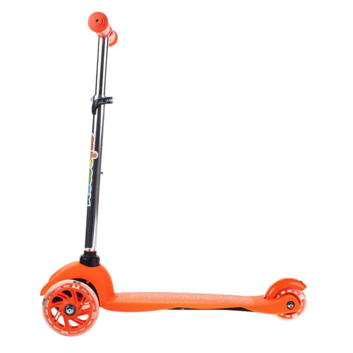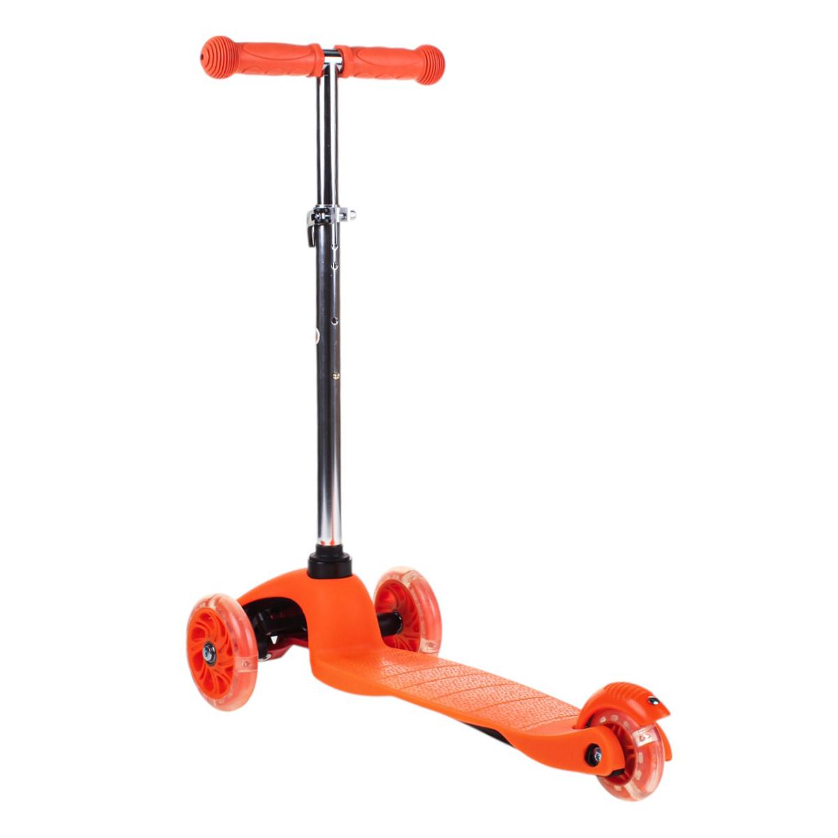 Самокат трехколесный детский с подсветкой колес, оранжевый, регулируемый руль, PVC 110 мм, тормоз задний