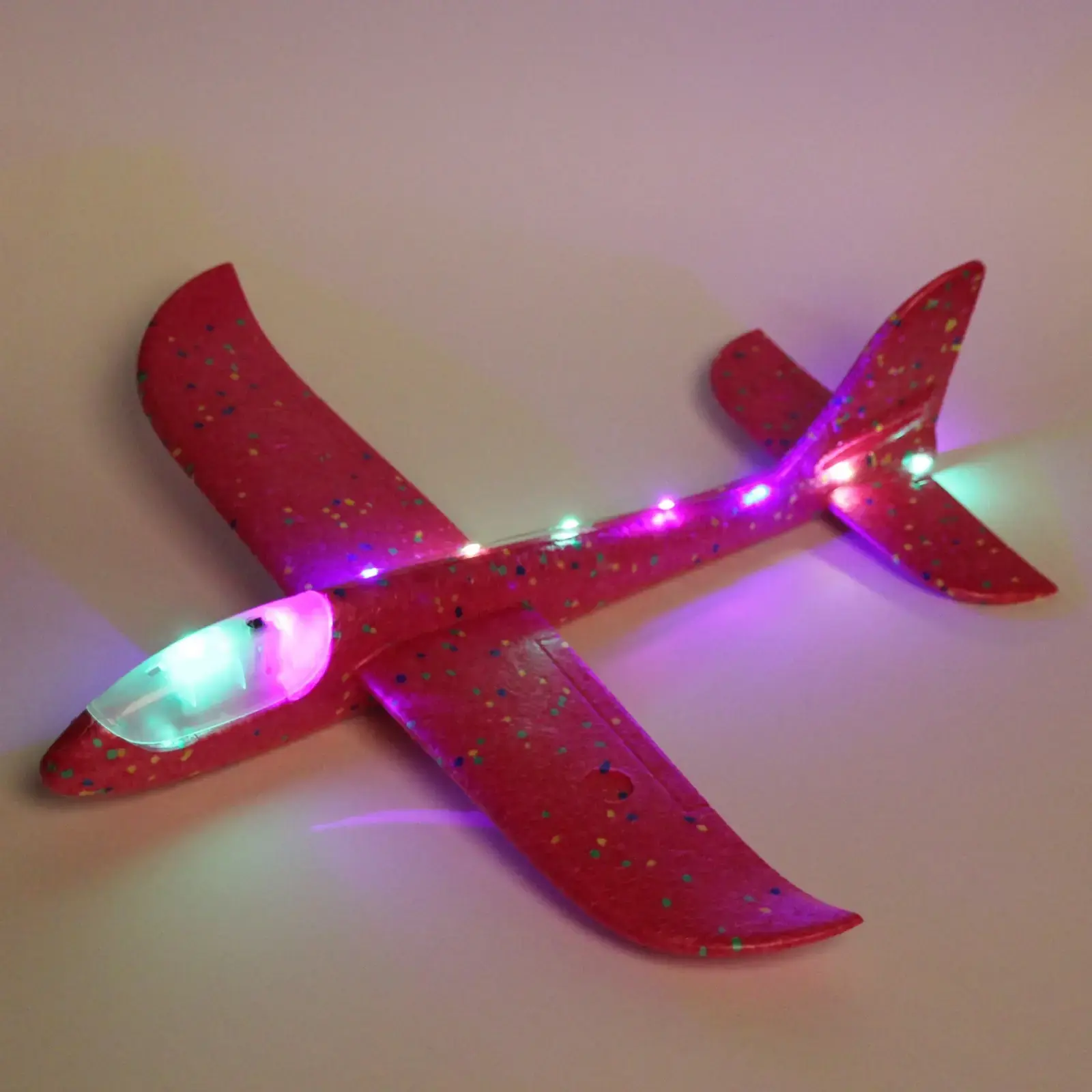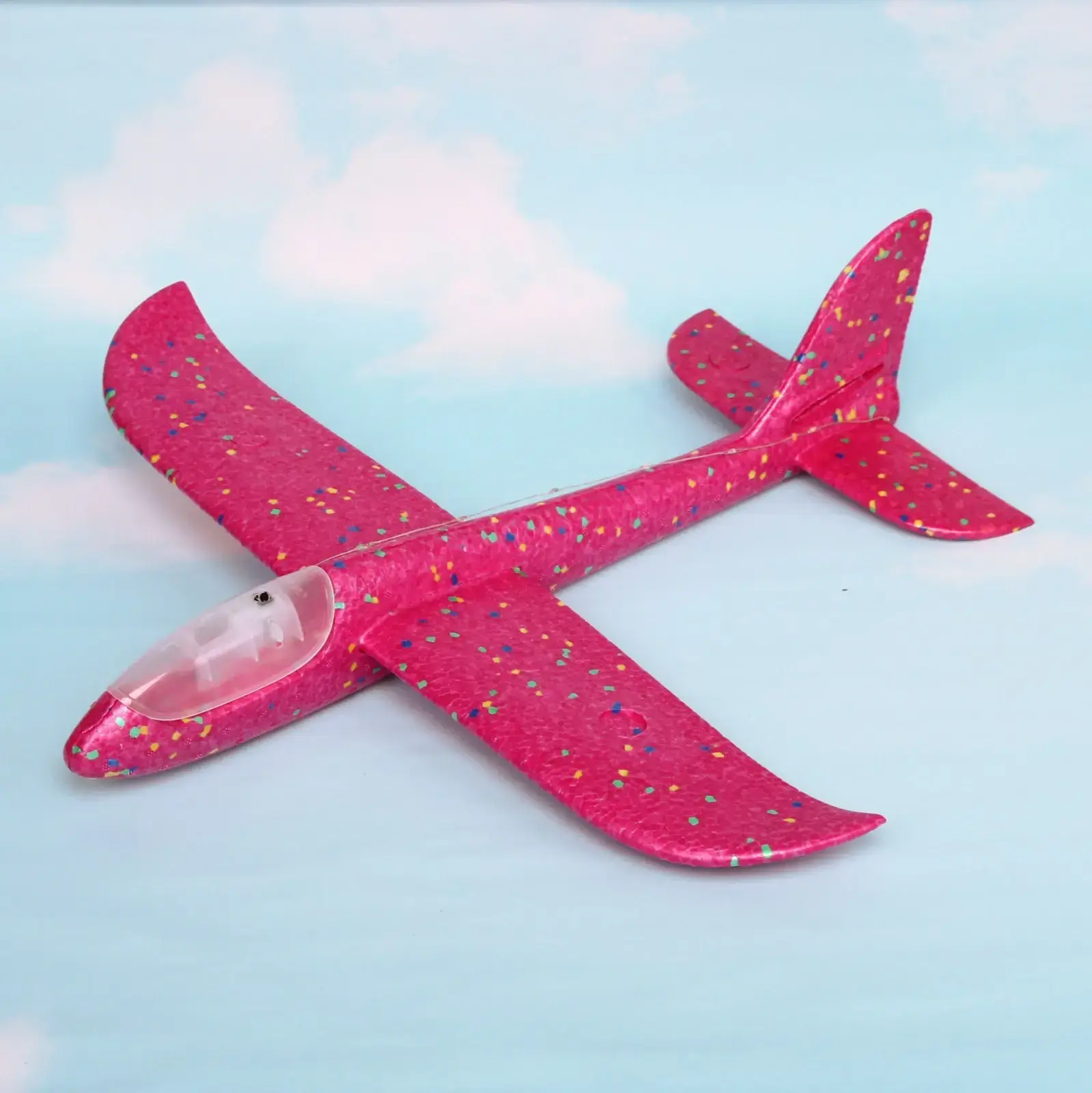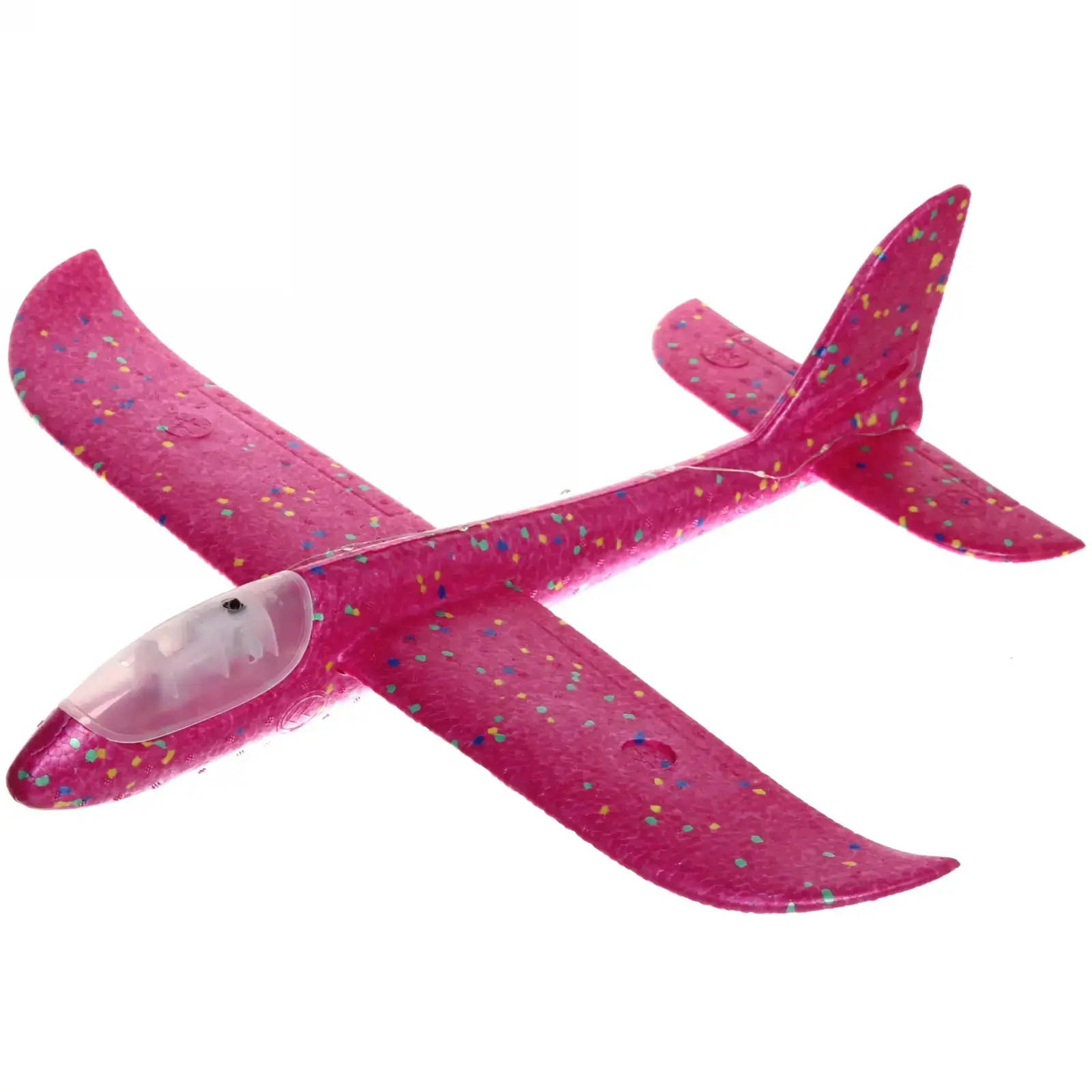 Самолет метательный «Истребитель» с LED-подсветкой, 46×48 см, пенопласт, розовый с конфетти